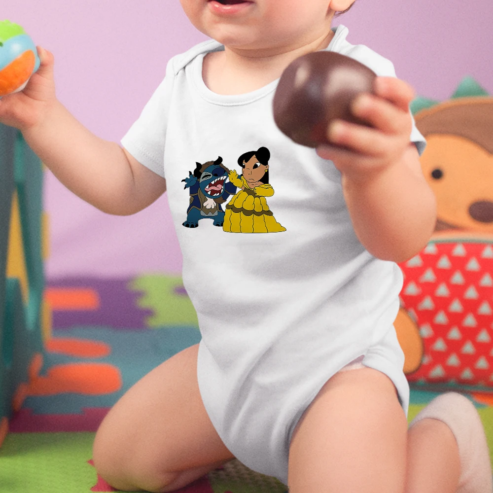 Детский необычный комбинезон Disney, Лило и Ститч, косплей, Красавица и чудовище, смешное боди для новорожденных, Женское боди