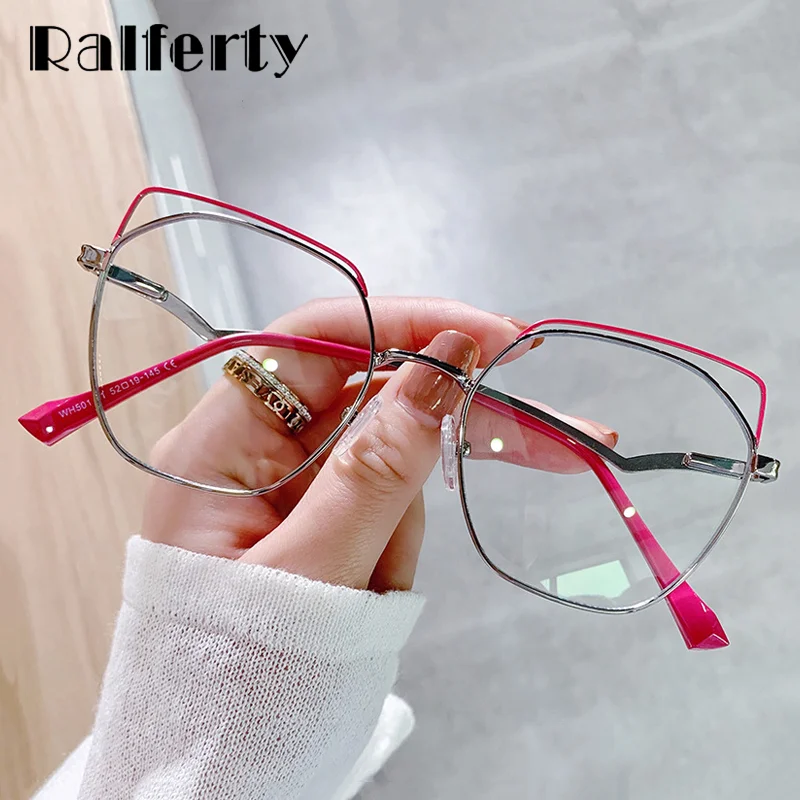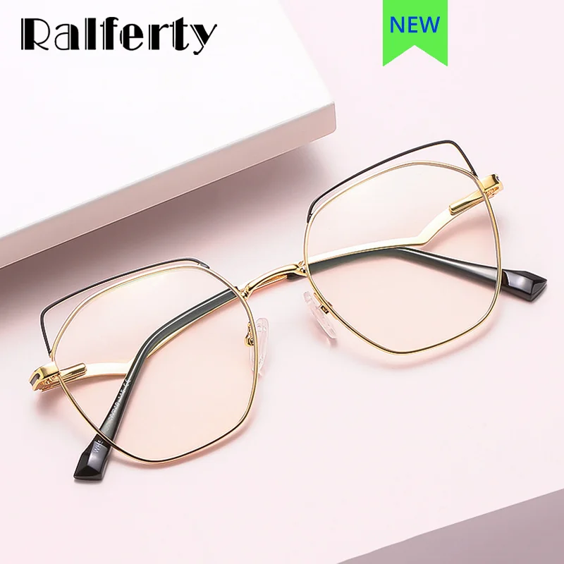 Ralferty 2021 INS модные оправы очков женские кошачий глаз анти-синий светильник металлические очки 0 диоптрий очки оправа