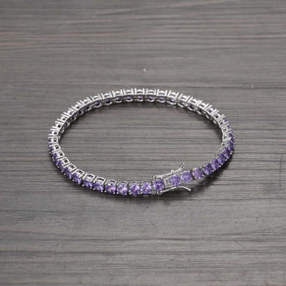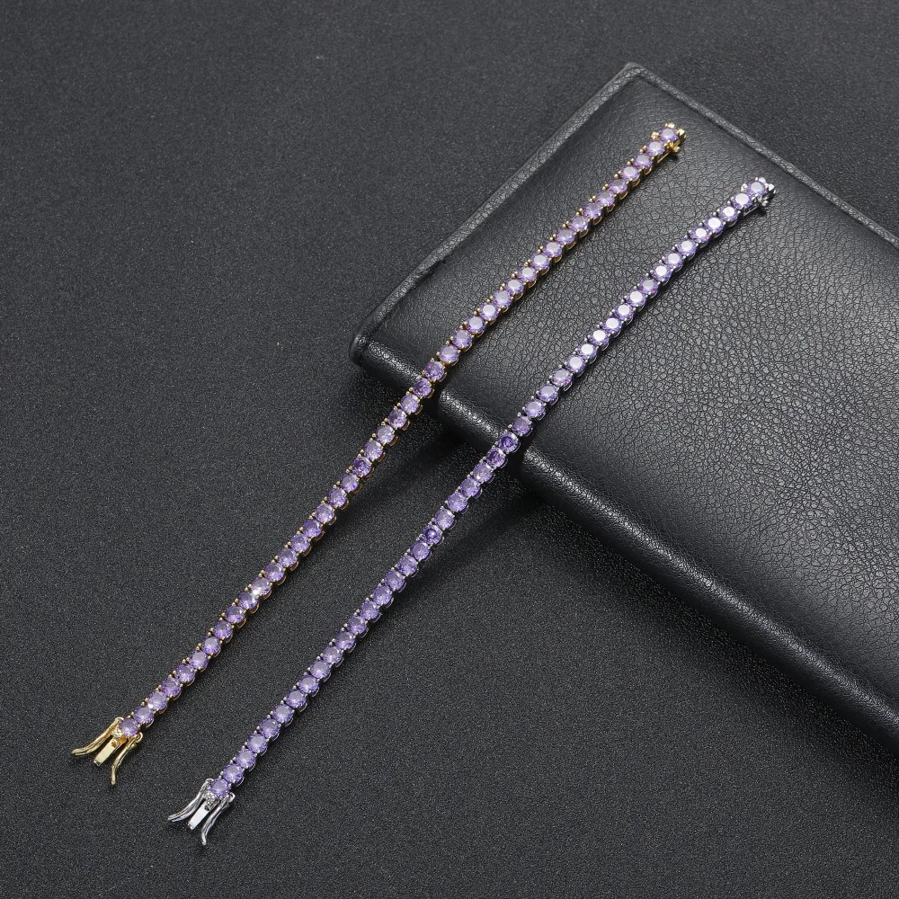 Браслет мужскойженский теннисный, фиолетовый ювелирный украшение в стиле хип-хоп, 4 мм 1 ряд, кубический цирконий высокого качества, золотистый и серебристый цвета, Подарочная бижутерия