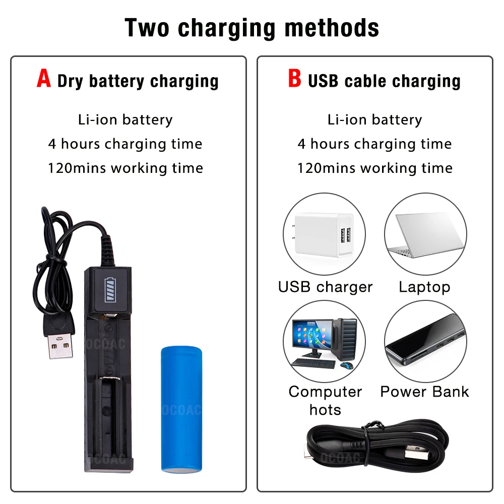 Dois métodos de cobrança:1. usb кабель2. carregamento da bateria seca