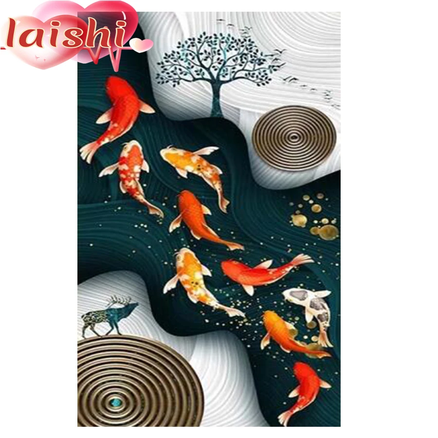 5D алмазная живопись, абстрактная Золотая Рыба, полная круглая дрельквадратная вышивка крестиком, алмазная вышивка сделай сам, мозаика, домашний декор