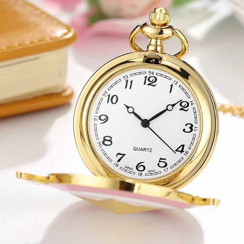 Японские золотые карманные часы Сакура в стиле аниме, ожерелье, звезда, крылья, подвеска, цепочка, часы, подарок для женщин и девушек