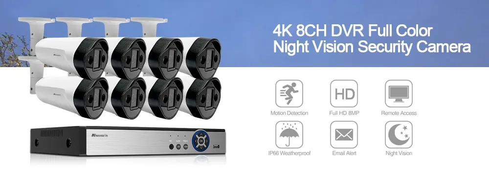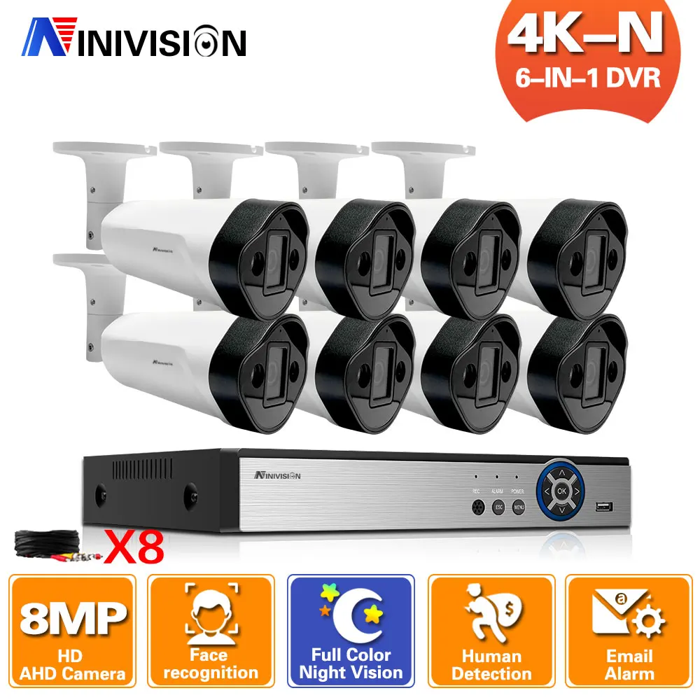 NINIVISION Полный Цвет ночного видения 4K 8CH CCTV камера видео система видеонаблюдения комплект AHD DVR 4CH 8MP домашняя камера видео набор