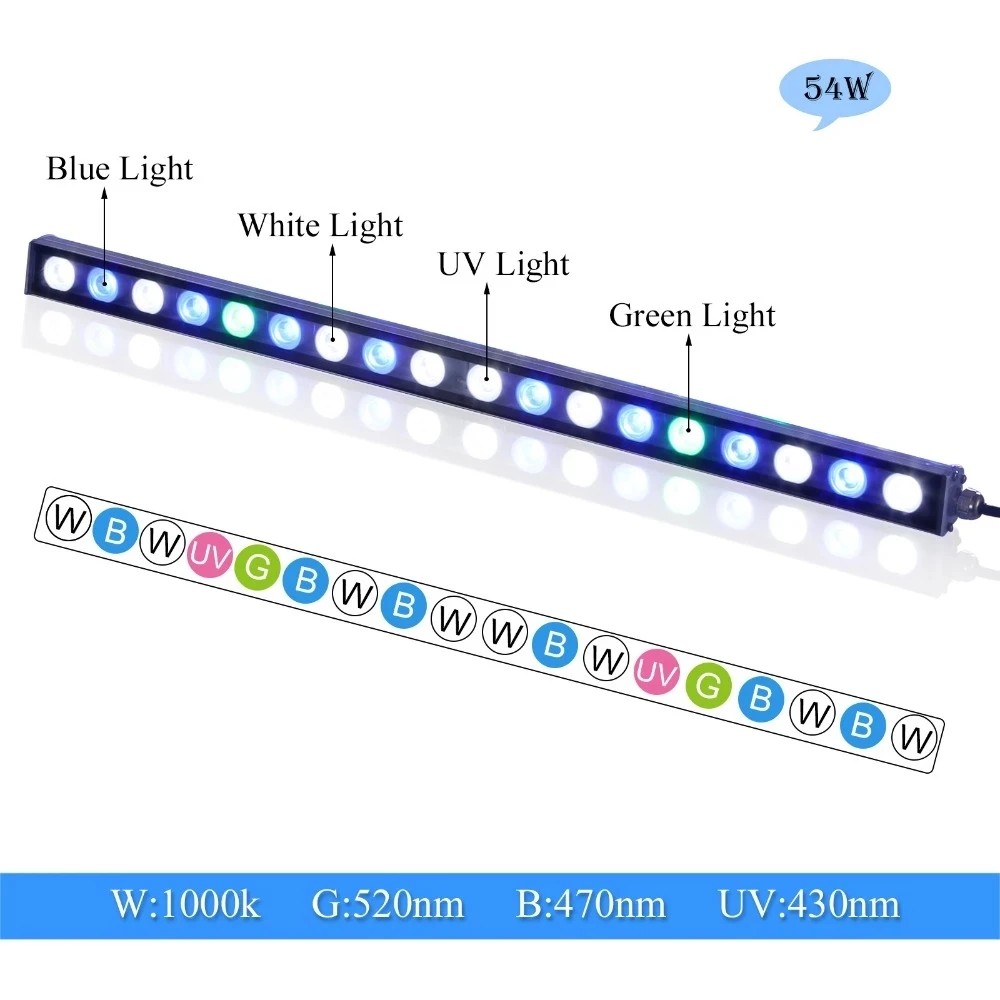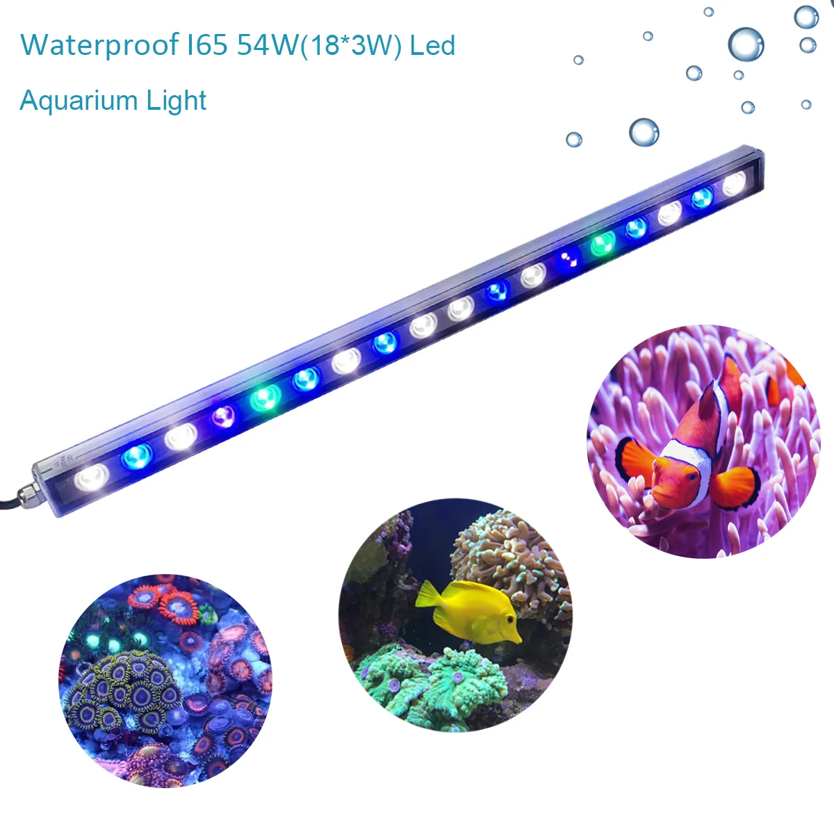Светодиодный светильник для аквариума IP65, 54 Вт, лента с белым и синим спектром, длина 55 см, коралловый светильник для рыбного рифа, кораллового аквариума