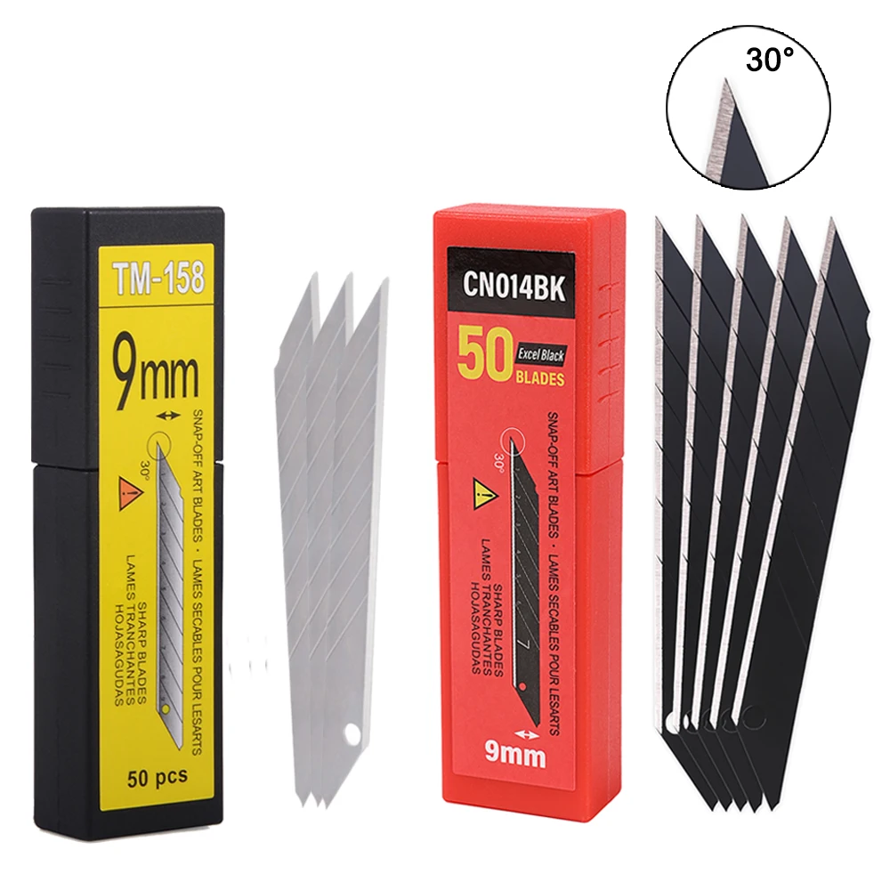 Название: 30 градусов 9 мм защелкивающиеся лезвия для художественного ножаМатериал: углеродистая стальЦвет: серебристый, черныйСтепень: 30 градусовРазмер: 9 мм Wx 70 мм L x 0,38 мм TМатериал резки: бумага, настенная бумага, карточный запас, винил, пленка, термоусадочная пленка, наклейки...Посылка включает в себя: (**** нож в комплект не входит)50/100 шт (1/2 коробки) х 30 ° запасных лопастей