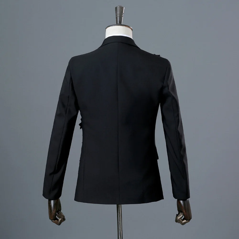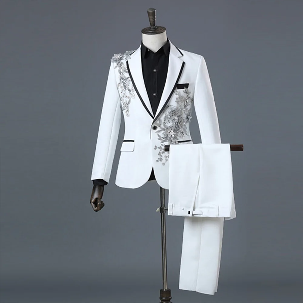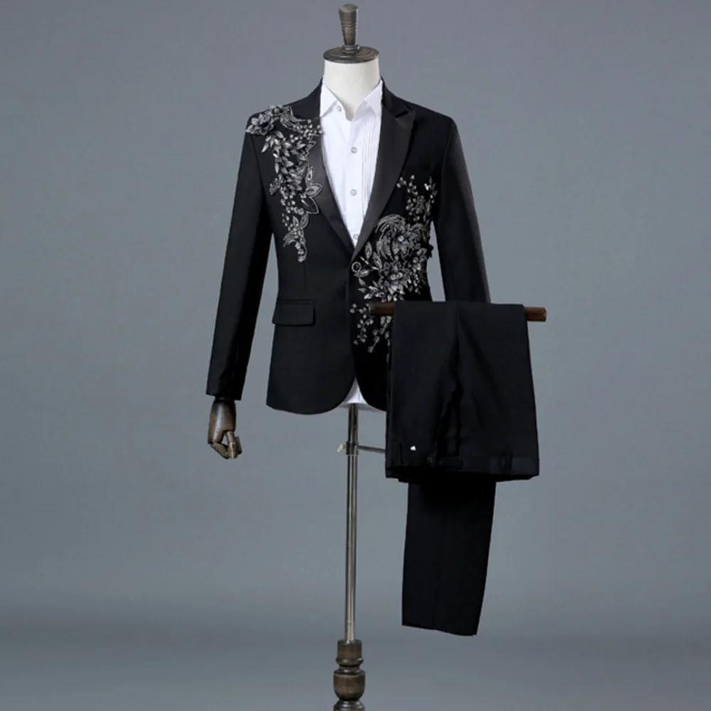Мужской костюм Блейзер и брюки с аппликацией, роскошная модная куртка, костюм с воротником, брюки, черный костюм для ночного клуба, костюм для сцены 2XL 2021