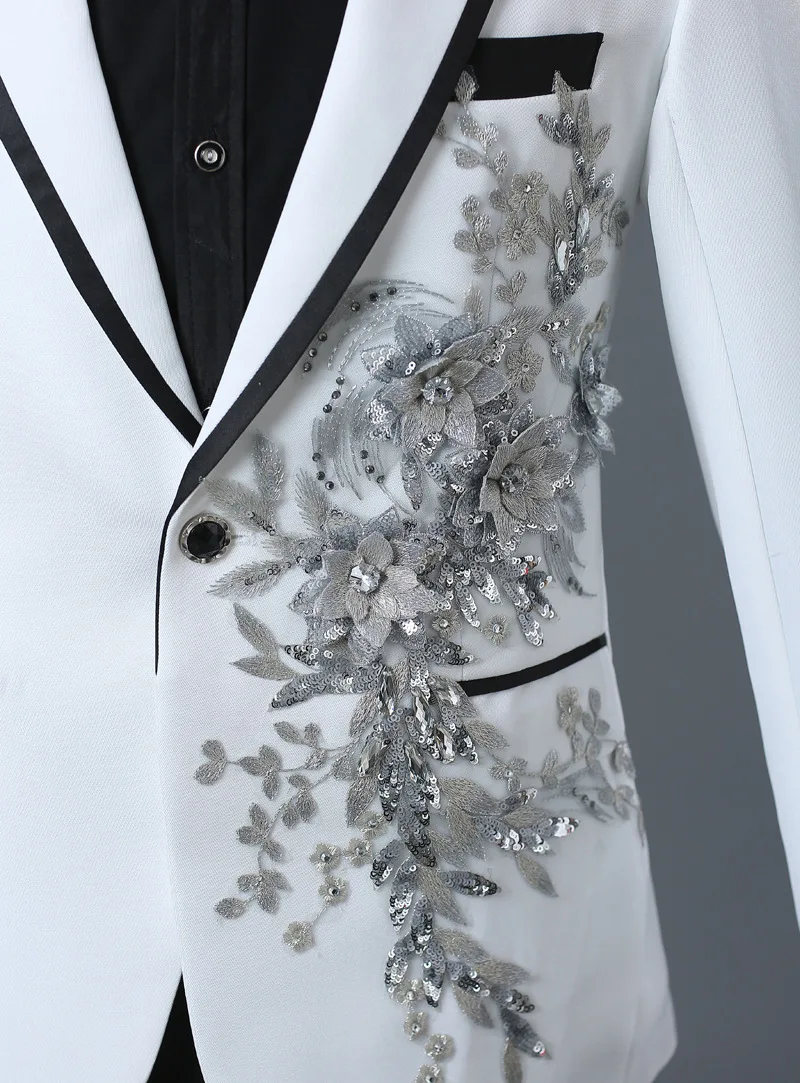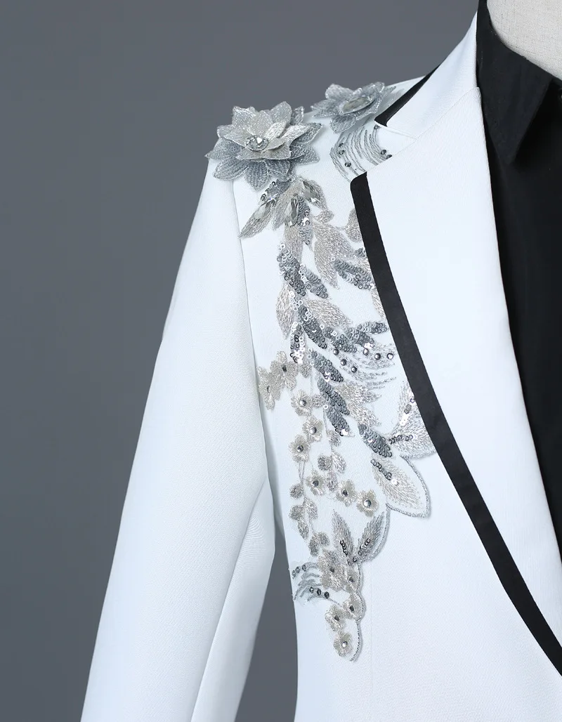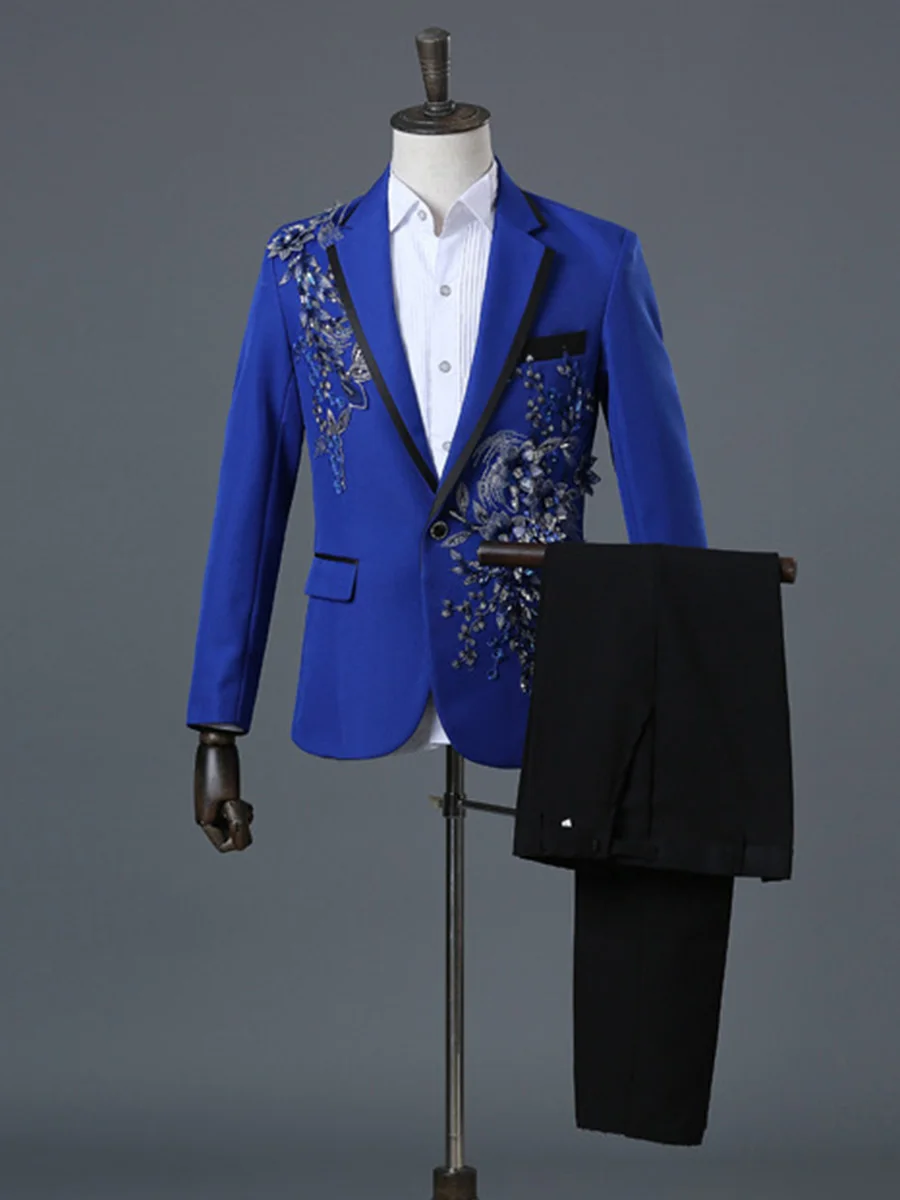PYJTRL Мужской Двусторонний костюм с цветочной вышивкой с 3D криста...