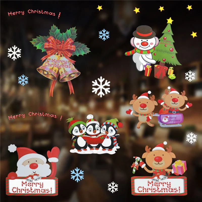 Рождественская Наклейка на окно в виде снежинки, рождественская елка, Санта-Клаус, медведь, Настенная Наклейка для Xams, торговая модель, украшение для дома