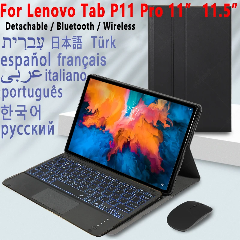 Русский Испанский корейский чехол для клавиатуры для Lenovo Tab P11 Pro 11 11,5 Tab-J606F чехол с сенсорной панелью клавиатуры с подсветкой