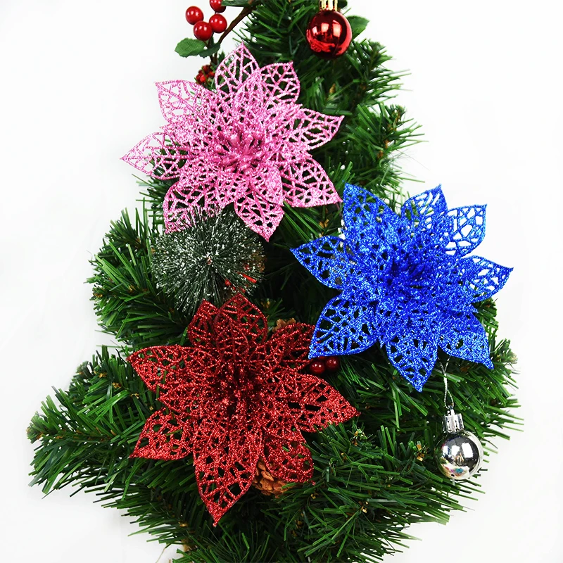 5 шт. 14 см блестящие Искусственные цветы пуансетия Рождественский цветок для рождественской елки подвесные украшения домашний декор для гостиной