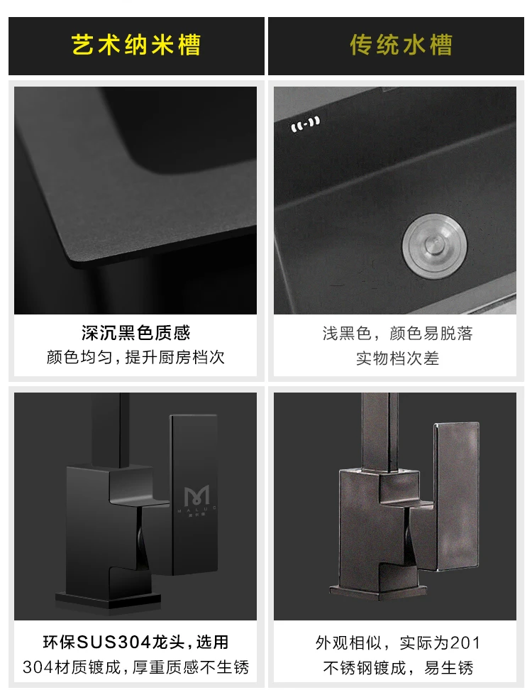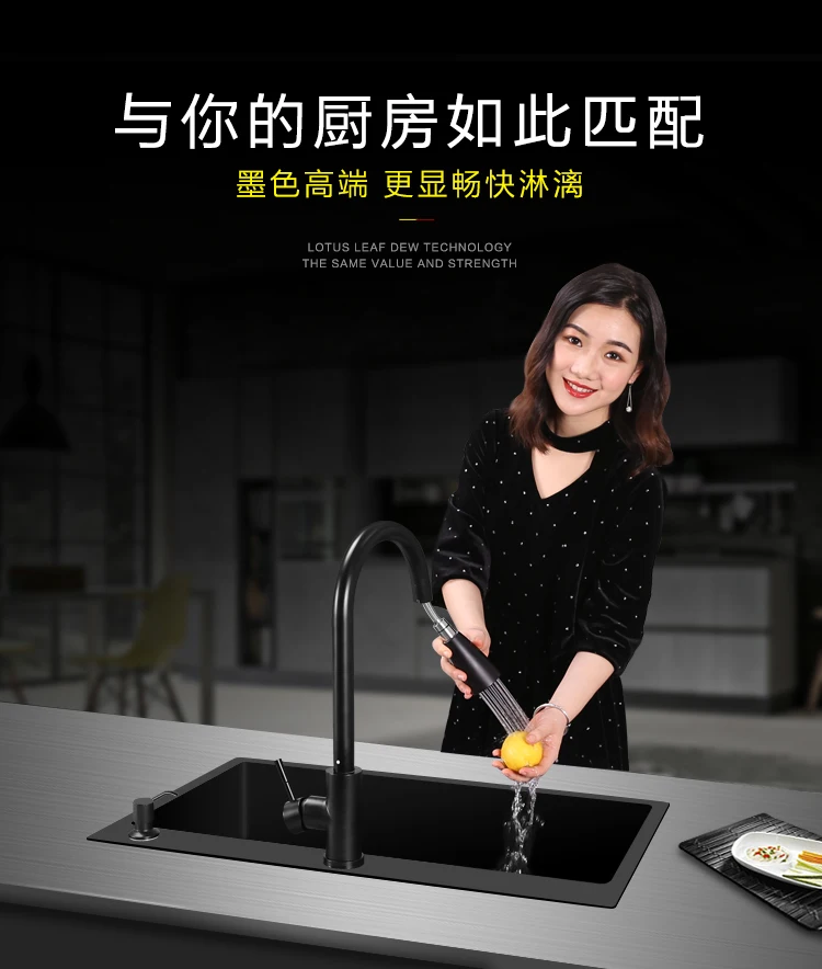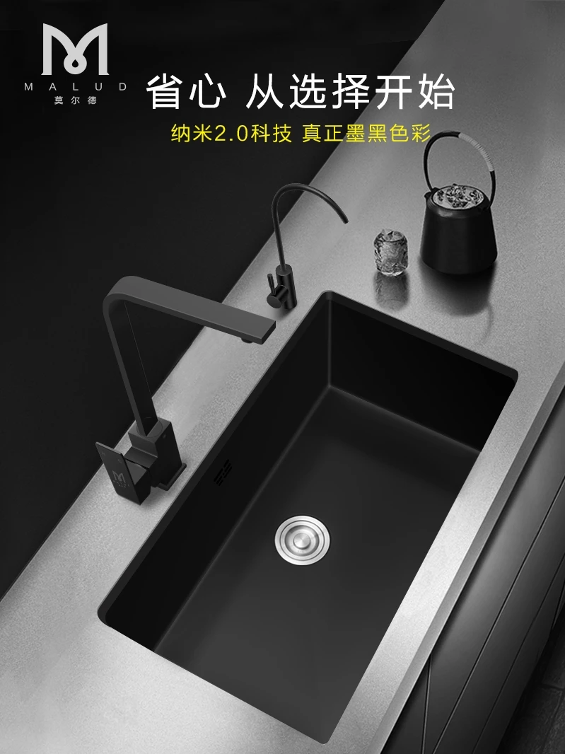 Черная раковина для кухни из нержавеющей стали 304 раковина для мытья овощей нано-резервуар для воды с одним пазом под креплением для большой кухни
