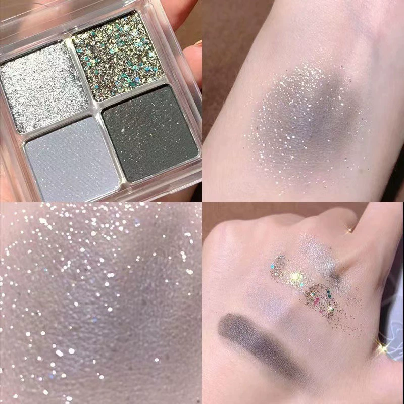 Палитра теней для век в стиле панк Smokey, Акриловые Матовые блестящие тени для век, мерцающие и сияющие, нюдовый пигмент для век, 4 цвета