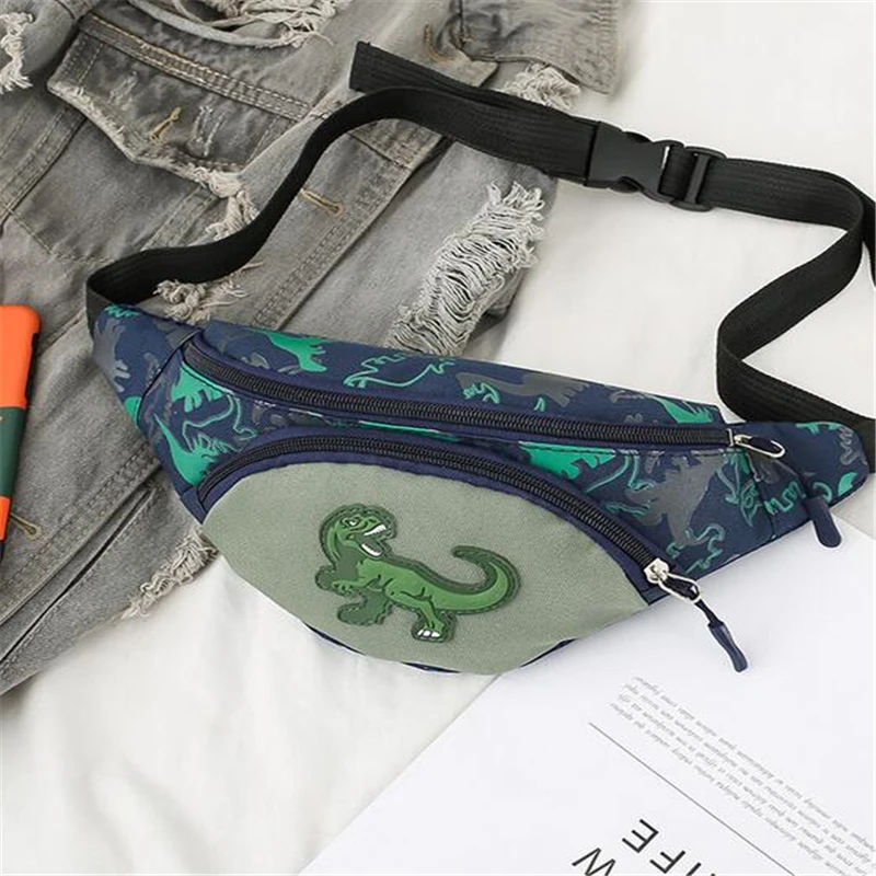 Детская поясная сумка для девочек и мальчиков, забавная нагрудная Сумочка с мультипликационным динозавром, Детский кошелек на ремне, мешок для денег, Детская поясная сумка на молнии