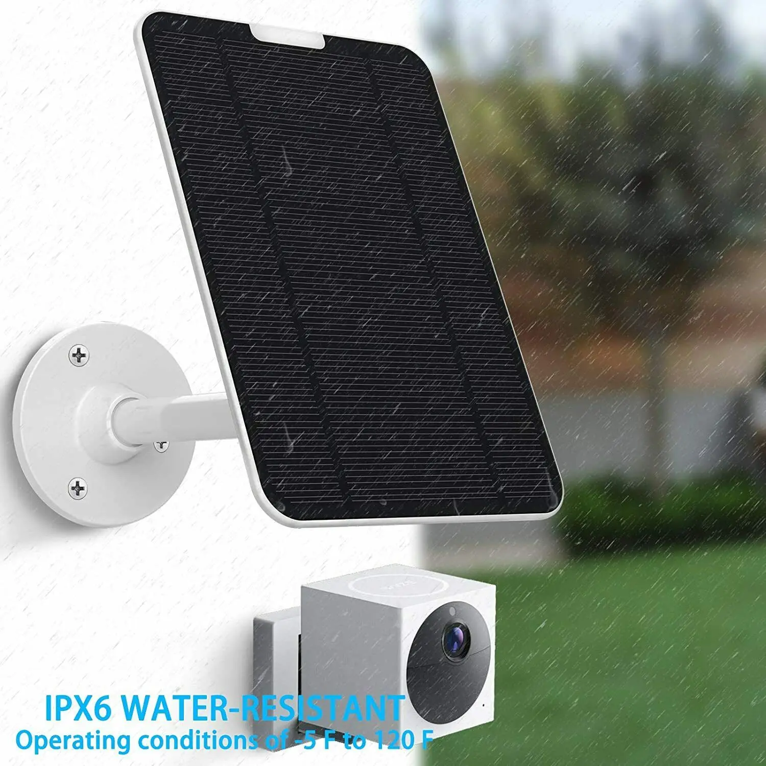 Водонепроницаемый дизайн: устойчивая к атмосферным воздействиям конструкция, прочная и долговечная, 4 Вт высокомощная однокристальная силиконовая солнечная панель может обеспечить непрерывную мощность для камеры WYZE на открытом воздухе.