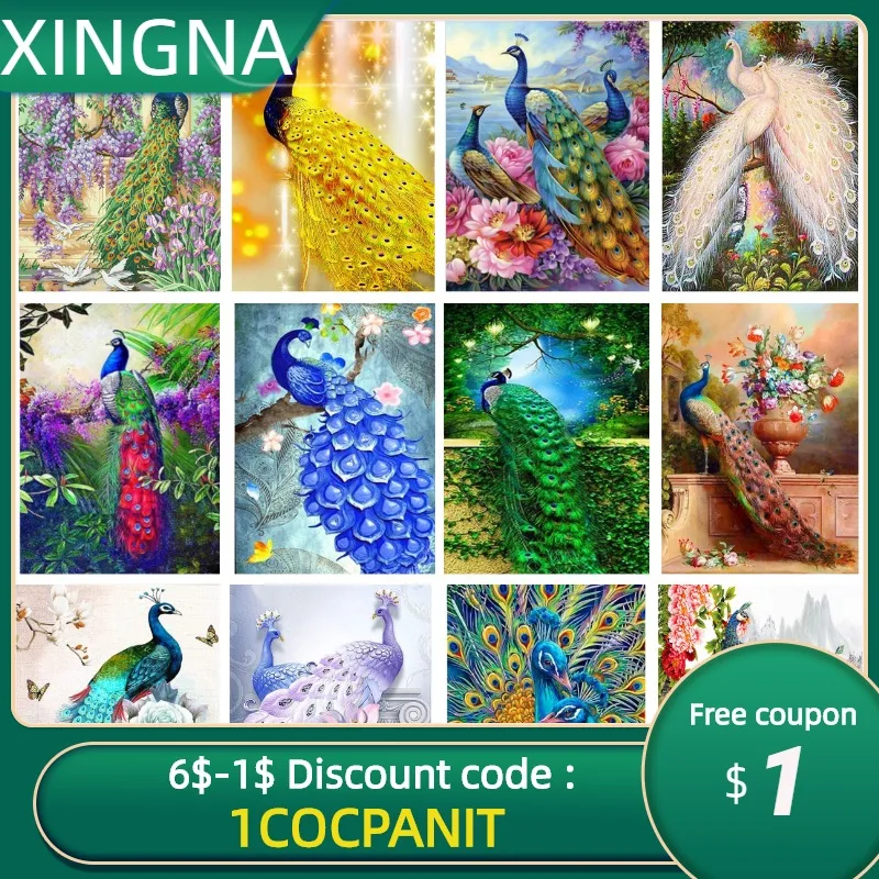Алмазная 5D Вышивка с мотивом животных, алмазная живопись Павлин, вышивка крестиком, стразы, украшение для дома