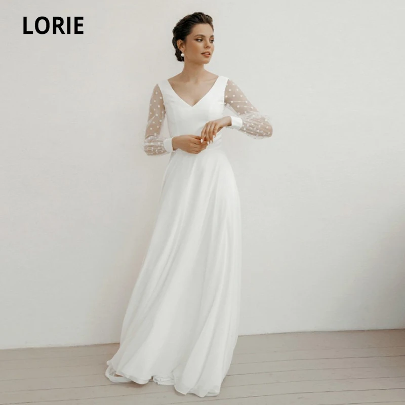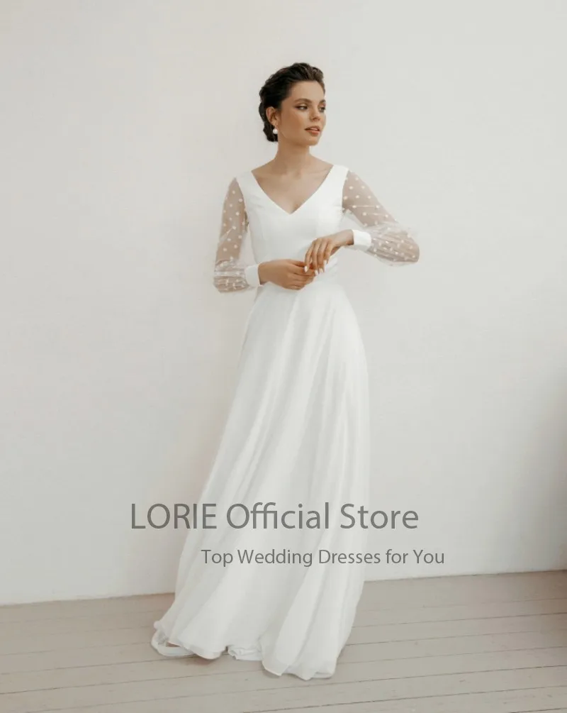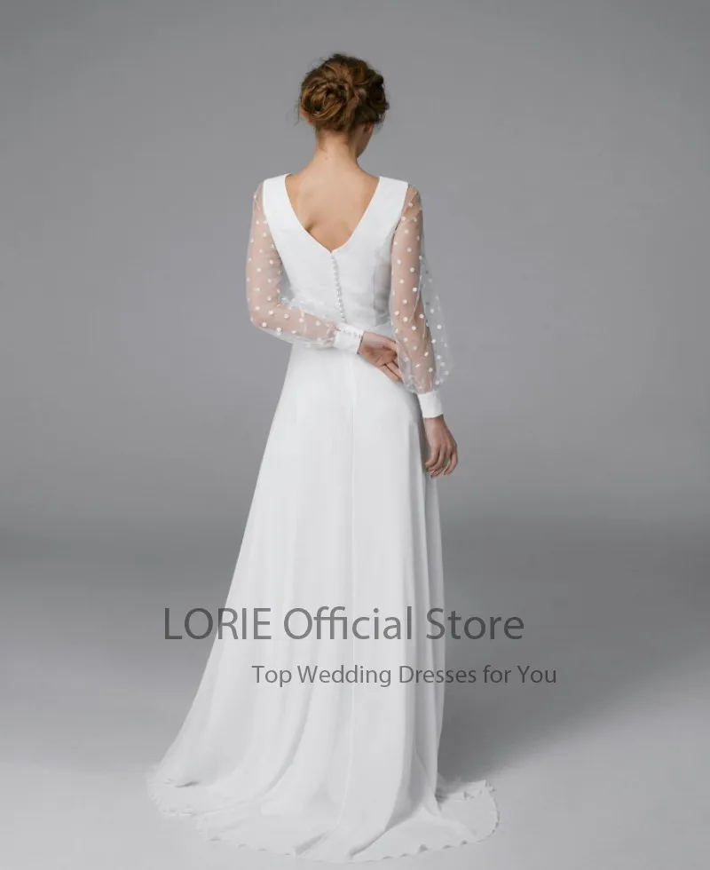 Пляжное свадебное платье LORIE с V-образным вырезом и длинными рукавами, шифоновое свадебное платье в горошек, современное свадебное платье на заказ, свадебная одежда