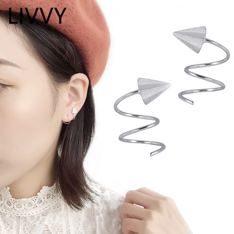LIVVY, серебряный цвет, креативный дизайн, Геометрическая стрела, спиральная лампа, предотвращение аллергии, ювелирные изделия для женщин