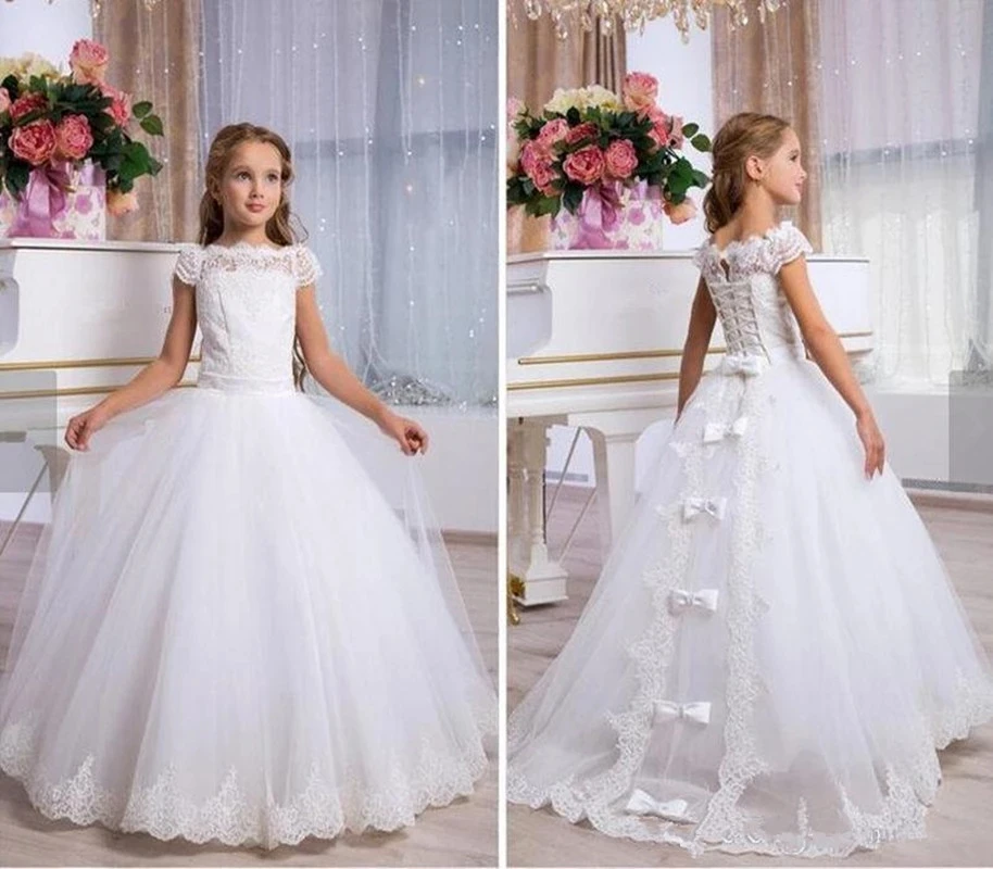Платья для девочек для первого причастия, кружевные милые белые пла...