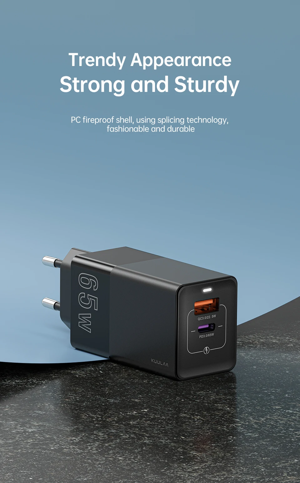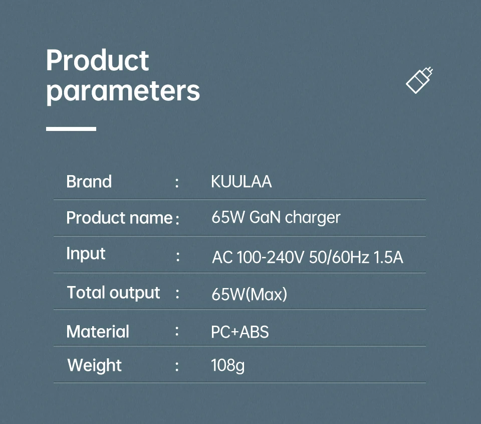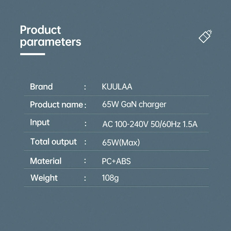 Устройство для быстрой зарядки KUULAA, 65 Вт, USB Type-C, QC 4,0