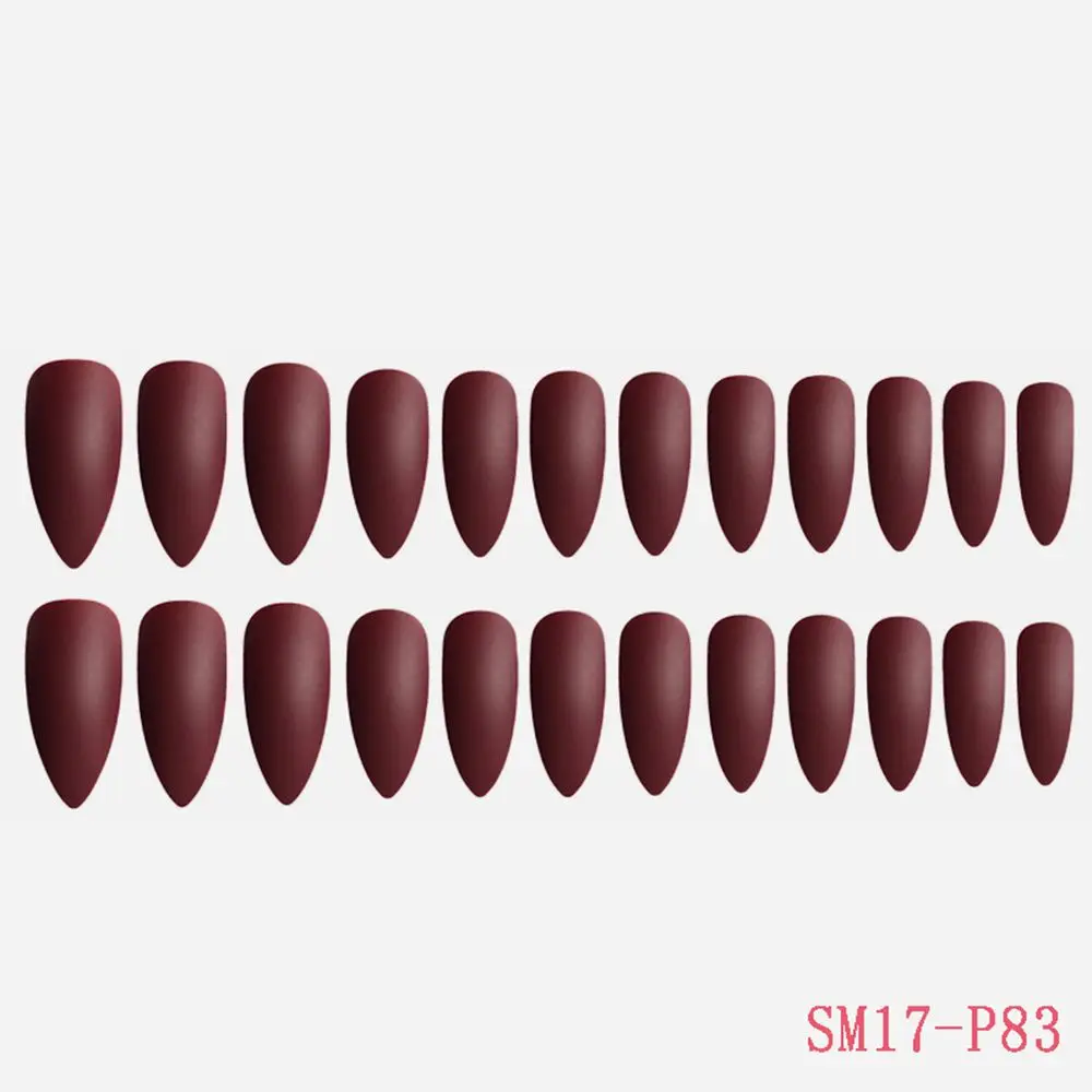 Акриловые искусственные ногти хорошего качества, винно-красные, черные, сверхдлинные, матовые ногти, легко наносится на искусственные ногти, 24 шт.