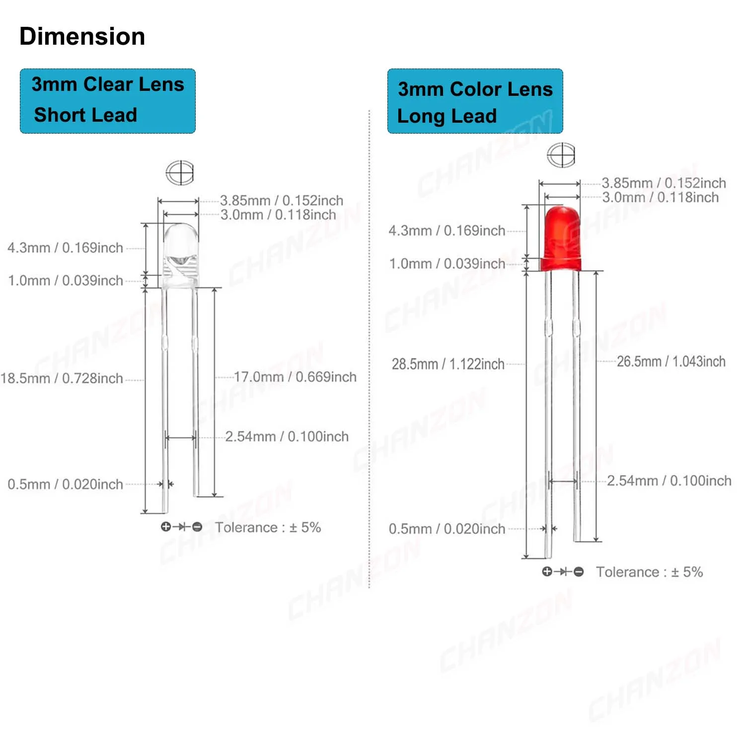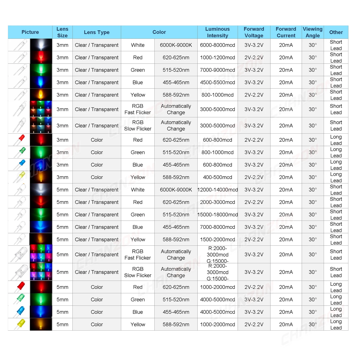 100 шт., светодиодные Диоды 3 мм, 5 мм