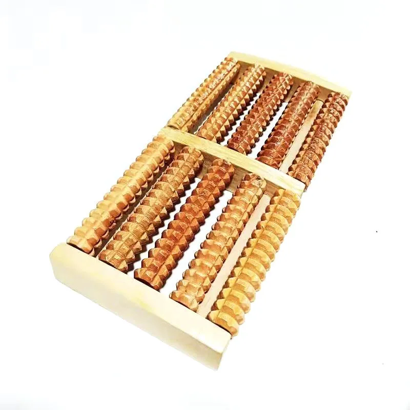 Этот уникальный массажер содержит десять деревянных роликовых стержней, которые отлично снимают стресс для ног или