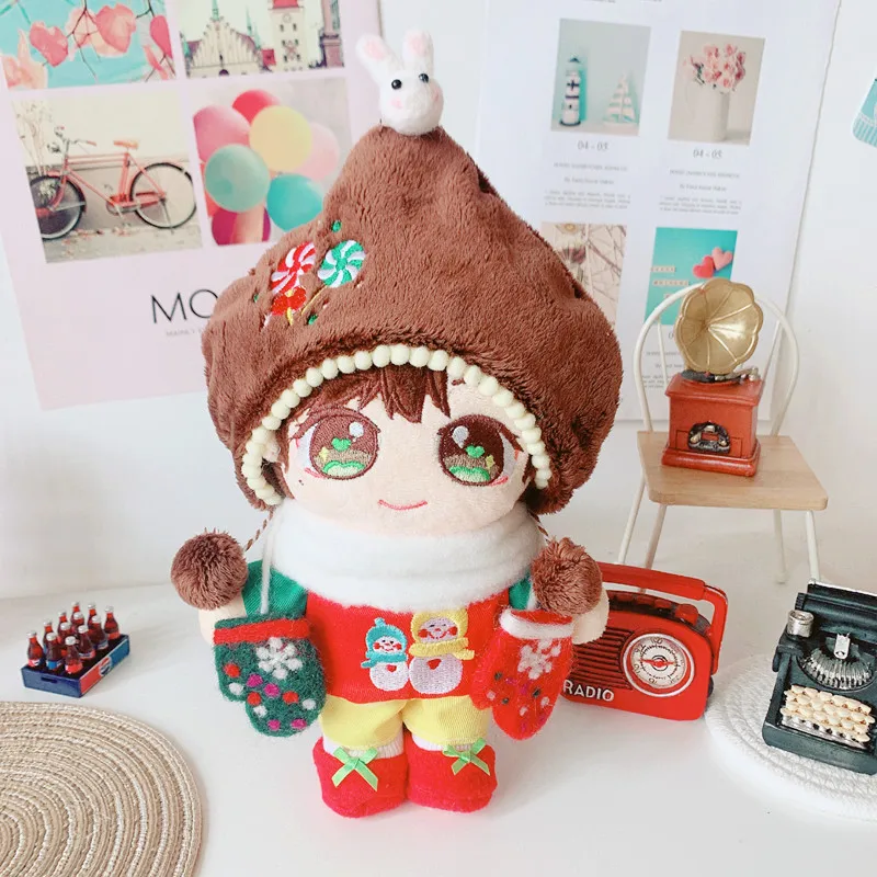 Рождественская плюшевая кукла со снеговиком 20 см, одежда, шапка, брюки, аксессуары для корейских кукол Kpop, кукол EXO Idol, одежда, фанаты, подарок для девочки