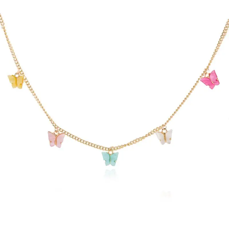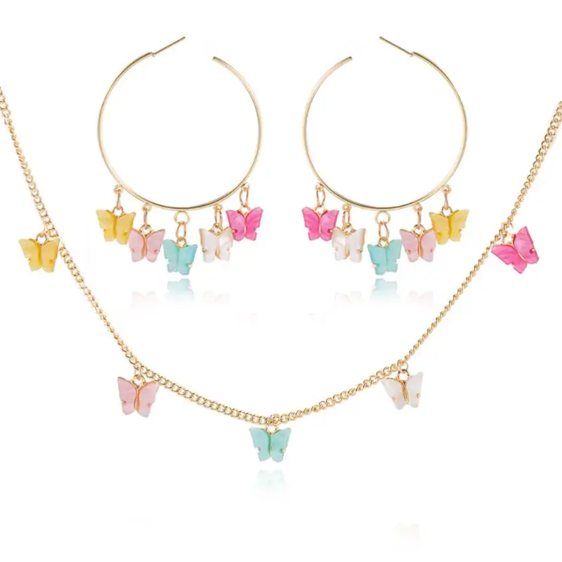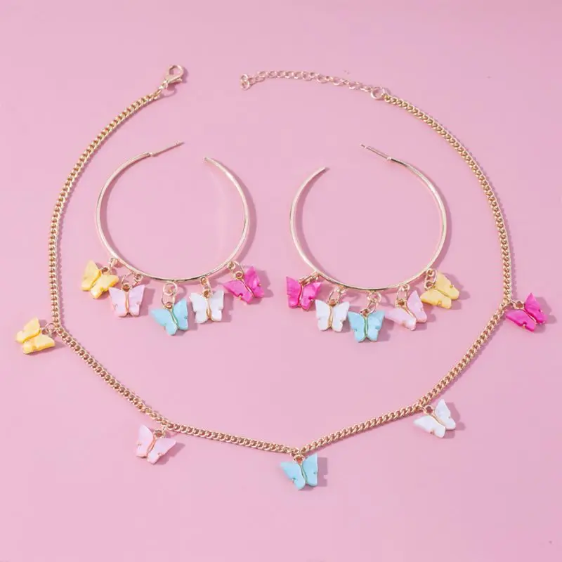 Модные женские металлические ювелирные изделия золотого цвета ожерелье серьги бабочки животные акриловые подарки для девочек ювелирные изделия для вечеринок