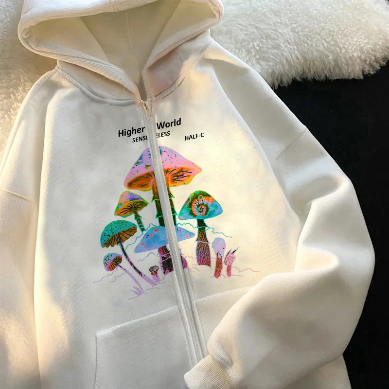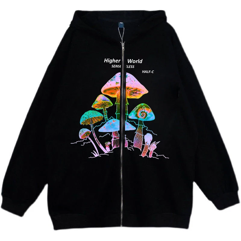 Женский свитшот с разноцветным принтом в виде грибов Y2K, модная повседневная винтажная Толстовка Оверсайз на молнии с надписью, в стиле Харадзюку, Готическая уличная одежда