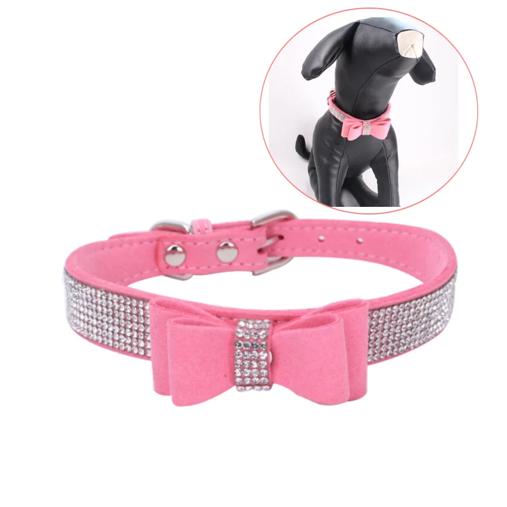 Ошейник с бантом для собак, блестящее украшение с бриллиантами для домашних животных, аксессуары для чихуахуа, кошки, мягкие модные аксессуары