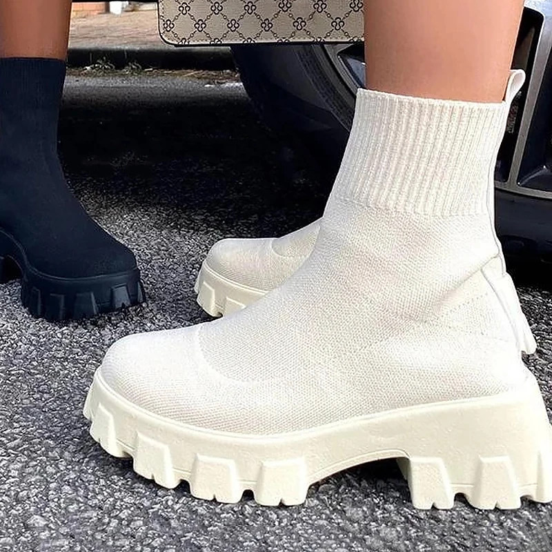 Женские ботинки-носки на платформе, Осенняя обувь, женская обувь на высоком каблуке, привлекательные Повседневные вязаные ботинки, короткие носки, обувь, Botas Mujer