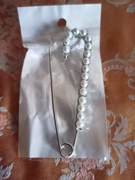 замовлення приїхало швидко, менш ніж за три тижні у збірній посилці НП. замовляла дві булавки, але саме ця приїхала вже розваленою. не знаю скільки протримається друга (срібляста). загалом відповідають опису і фото. достатньо великі щоб їми застібати кардигани з грубої пряжі.