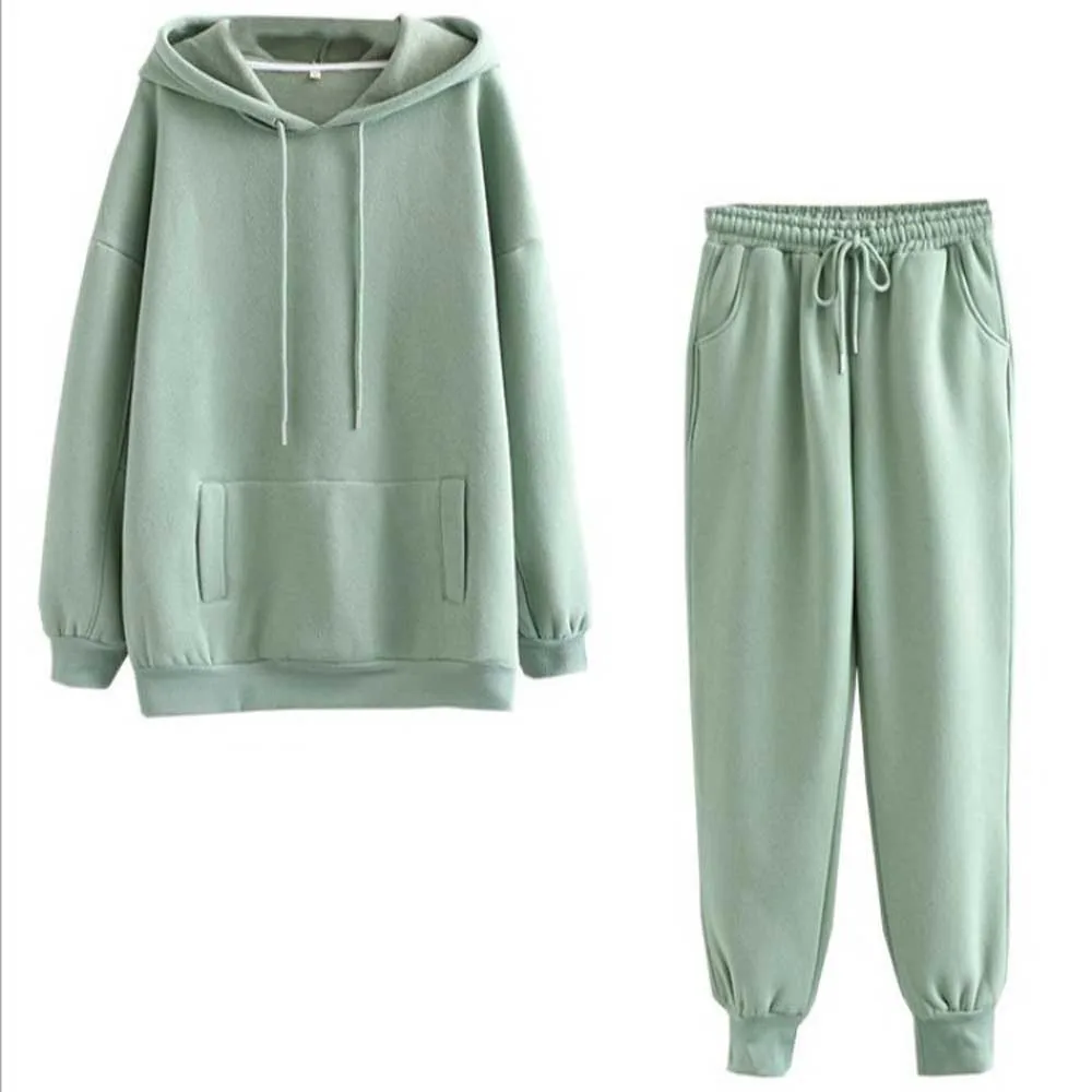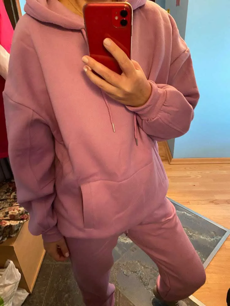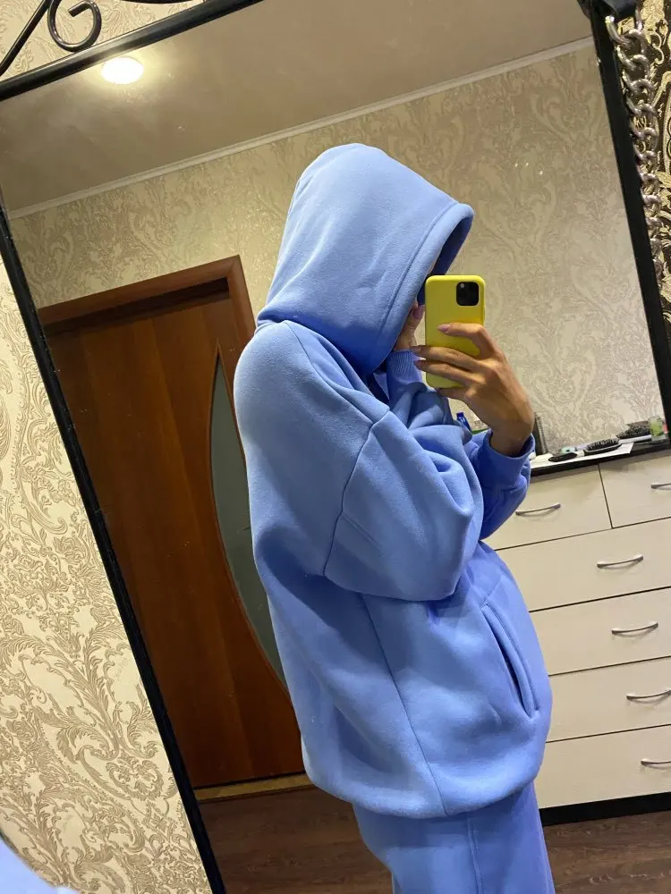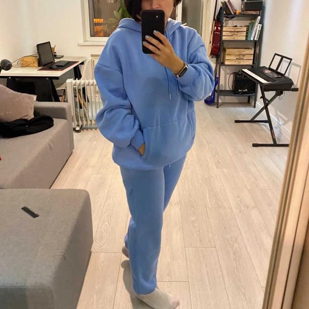 Женские комплекты из 2 предметов, Утепленные зимние толстовки с капюшоном и длинные брюки с высокой талией и эластичными карманами