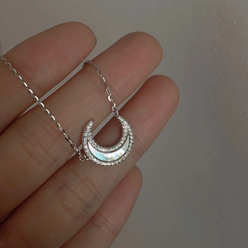 Женское Ожерелье MEYRROYU, изысканное ожерелье из серебра 925 пробы с натуральной белой ракушкой из циркония в форме Луны, французское ювелирное украшение на шею