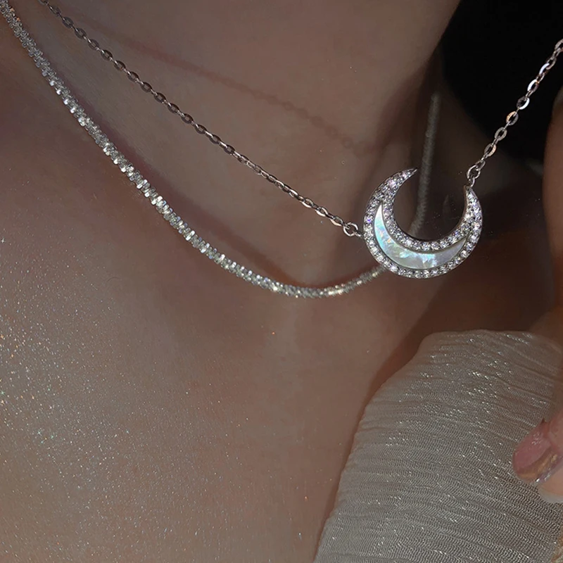 Ливи серебро Цвет микро-инкрустированные Лунная ракушка ожерелье, п...