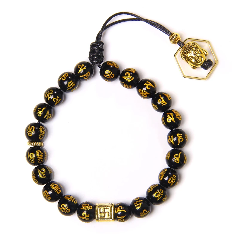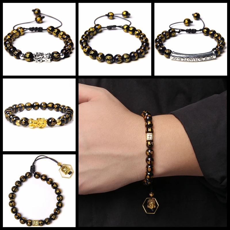 Буддизм фэн-шуй бусины Шарм браслет для мужчин золото черный пиксиу богатство удача мантра бусины регулируемые браслеты ювелирные изделия поставки подарки