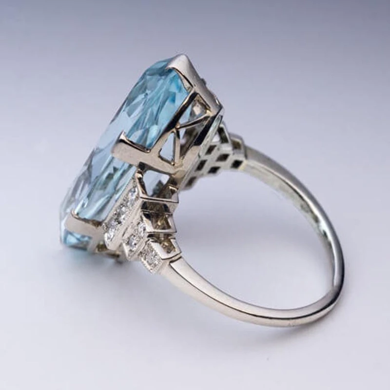 Высококачественное элегантное роскошное женское ювелирное изделие, кольцо обещания, обручальное кольцо для девушки, обручальное кольцо овальной формы с большим синим кристаллом