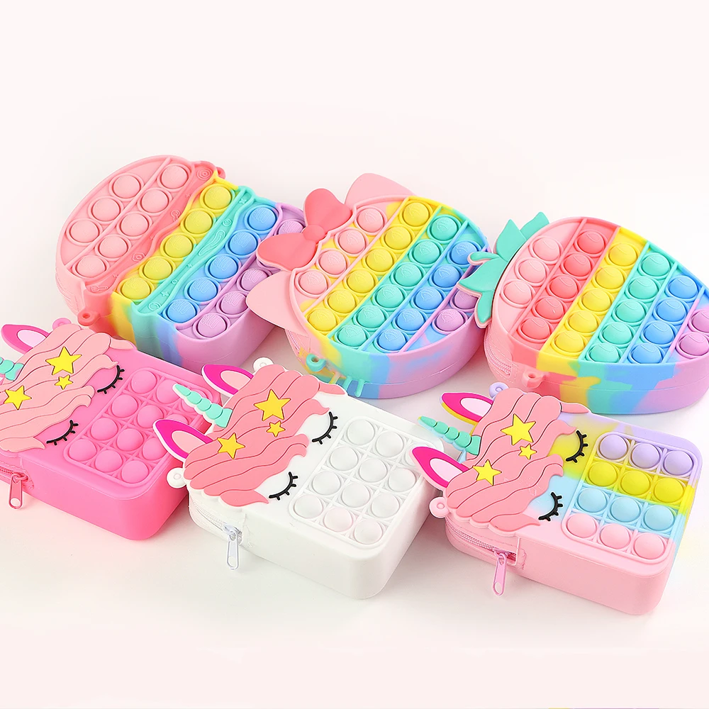 Радужный Единорог, Сумка с пузырьками на ремешке, кошелек для монет, женская сумка с авокадо, сумка для игрушек, сумки через плечо для девочек с простым затемнением