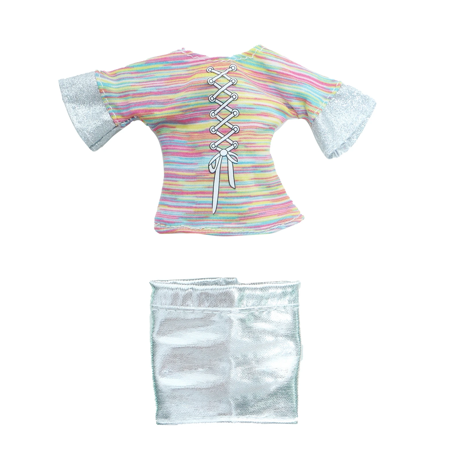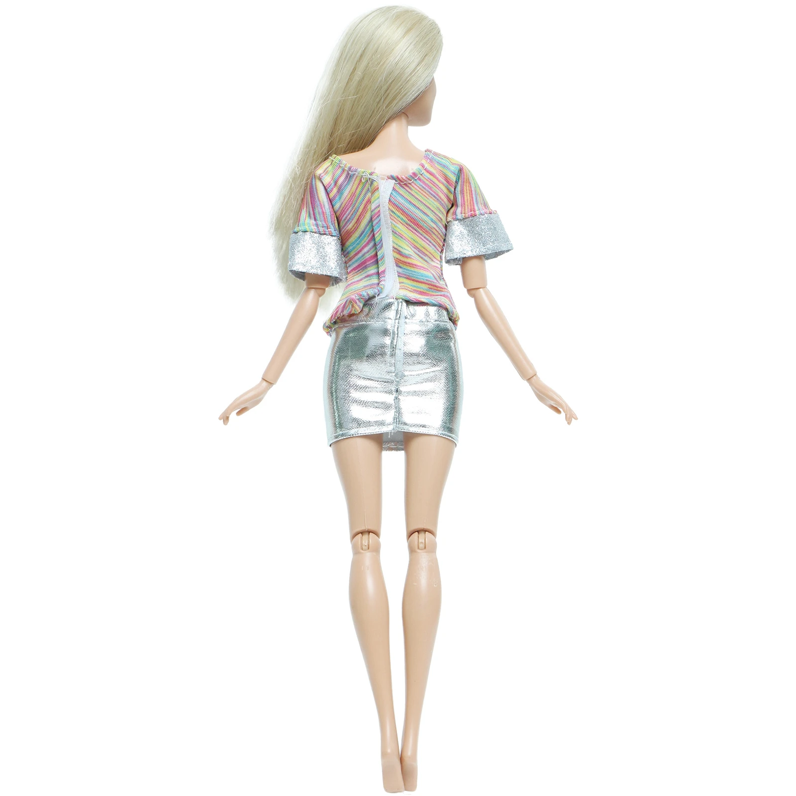 Сияющая Серебряная юбка BJDBUS, красочная полосатая рубашка, модное крутое платье для девочки, наряд, Одежда для куклы Барби, аксессуары, игрушка