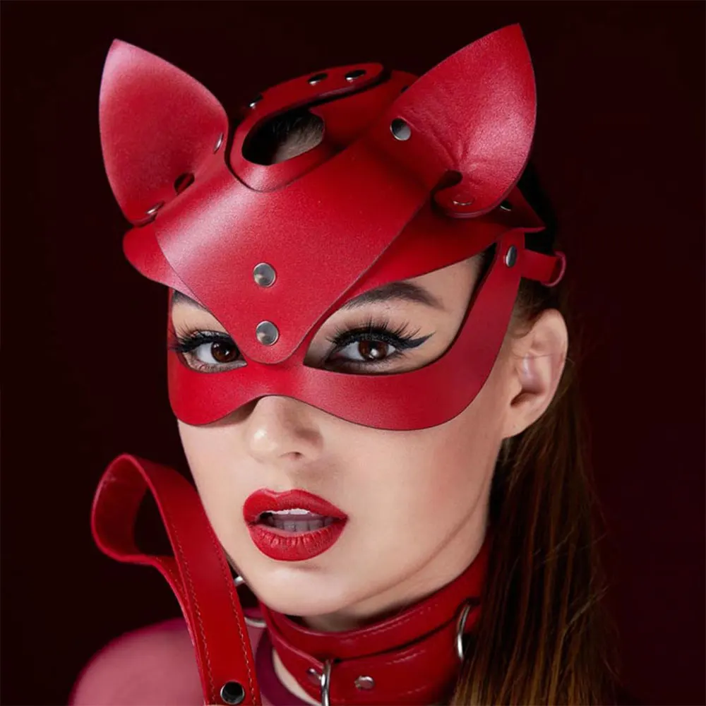 Mask Half Eyes Cosplay FaceCat Leather Harness Mask