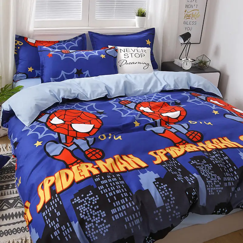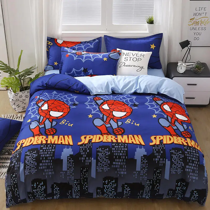 Комплект постельного белья Синий Человек-паук, с мультяшным принтом, пододеяльник, простыня, наволочка, комплект из 34 предметов, для двуспальной кровати