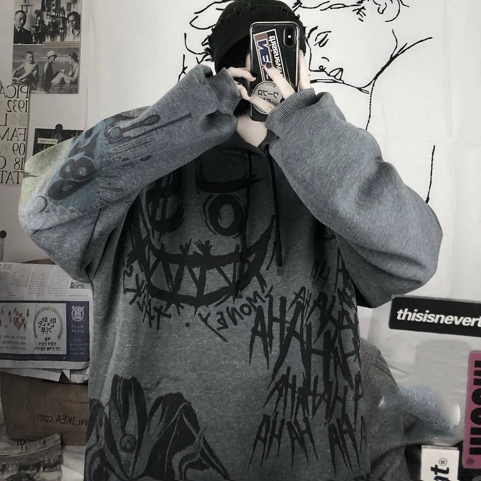 Худи женское в стиле хип-хоп, свитшот с капюшоном в японском стиле панк, худи в стиле оверсайз с длинным рукавом, топы на осень