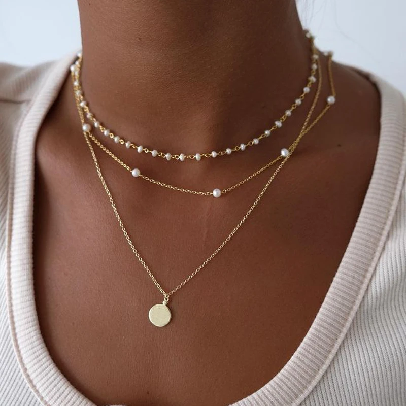 Многослойное ожерелье с подвеской, свадебная бижутерия для женщин, новинка 2021, Трендовое ожерелье с прозрачными бусинами, жемчугом, крестом, звездой, Луной