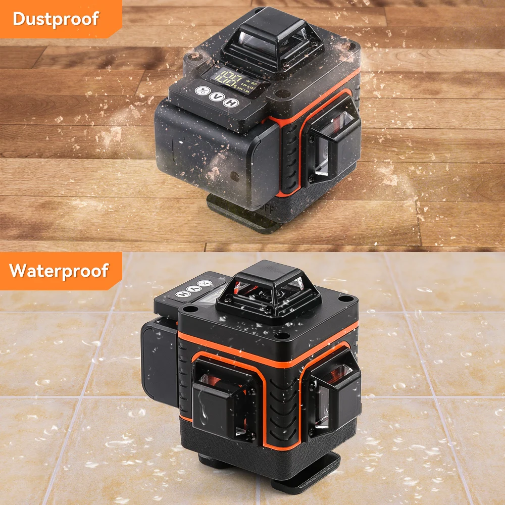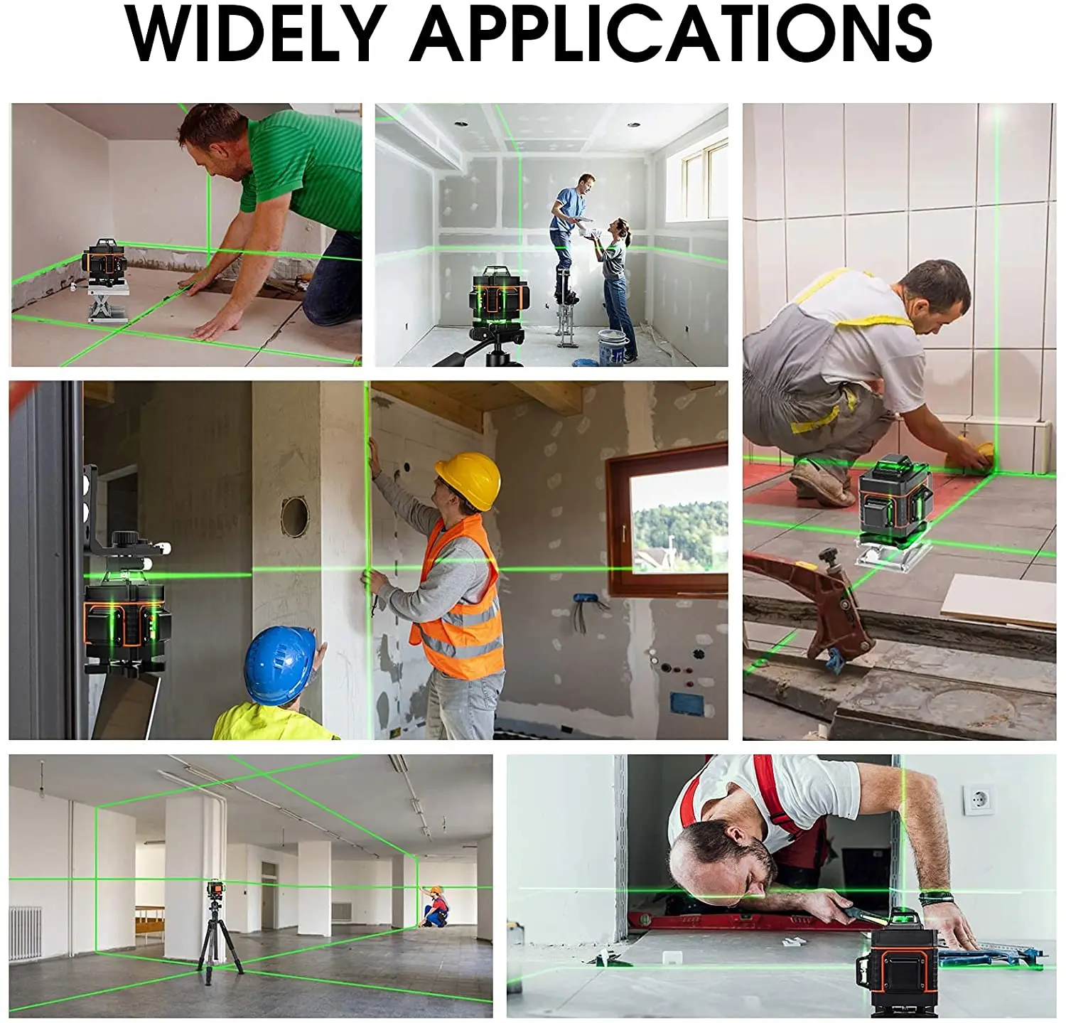 Лазерный уровень A-BF имеет 2 горизонтальных плоскостей 360 °, две вертикальных плоскостей 360 ° и 16 лазерных линий, которые могут покрывать пол, стену и потолок вокруг комнаты. Горизонтальные и вертикальные линии пересекаются под углом 90 ° 90 °, чтобы помочь вам быстро визуализировать и завершить квадратный макет.