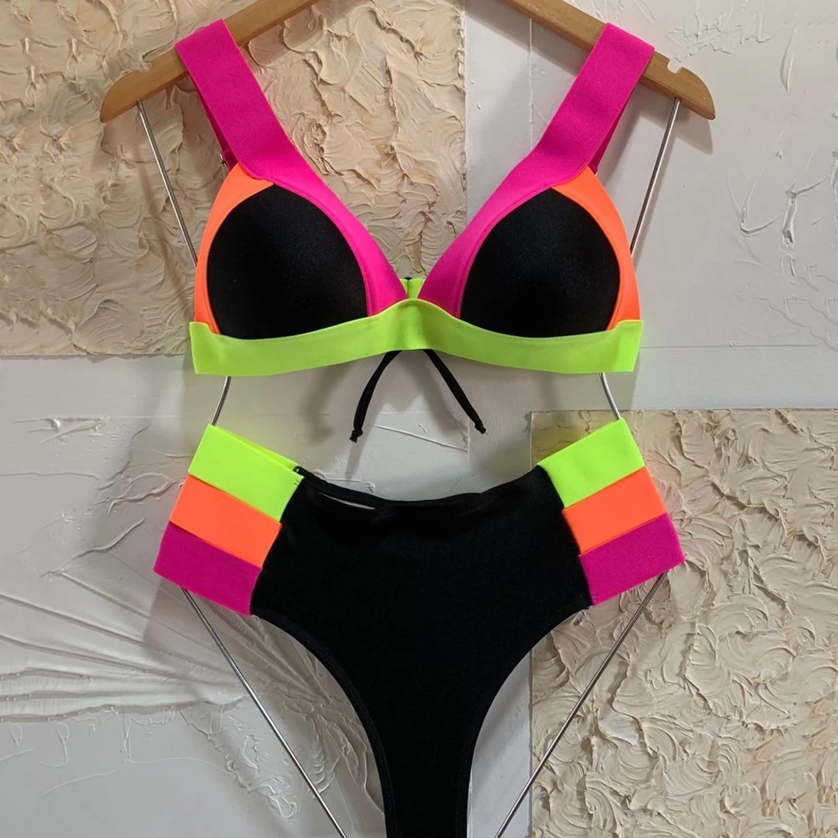 Соблазнительные бикини 2021, комплект бикини с пуш-ап, женский купальник с завышенной талией, женский купальник, бикини, купальный костюм, пляжная одежда для плавания