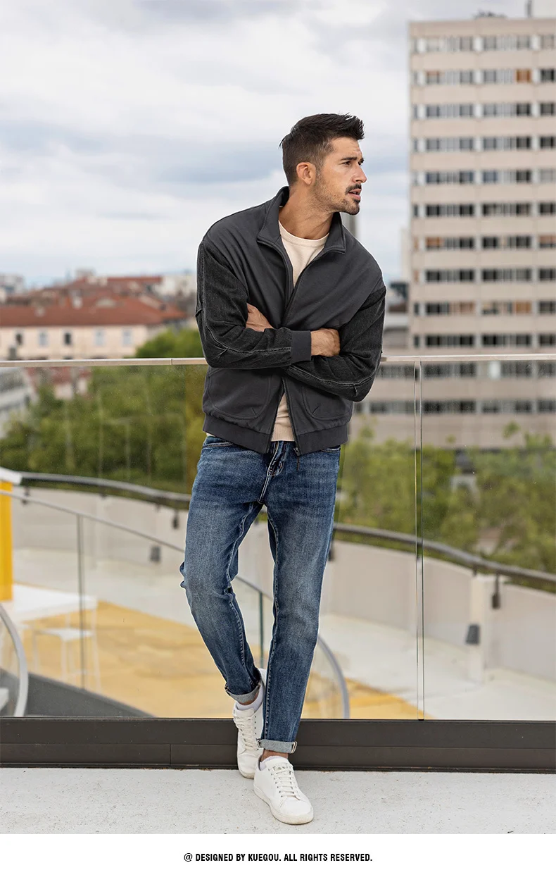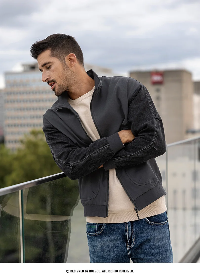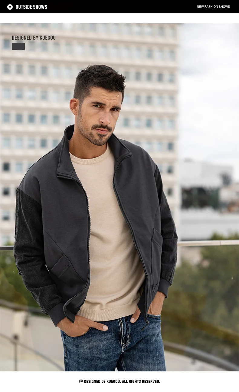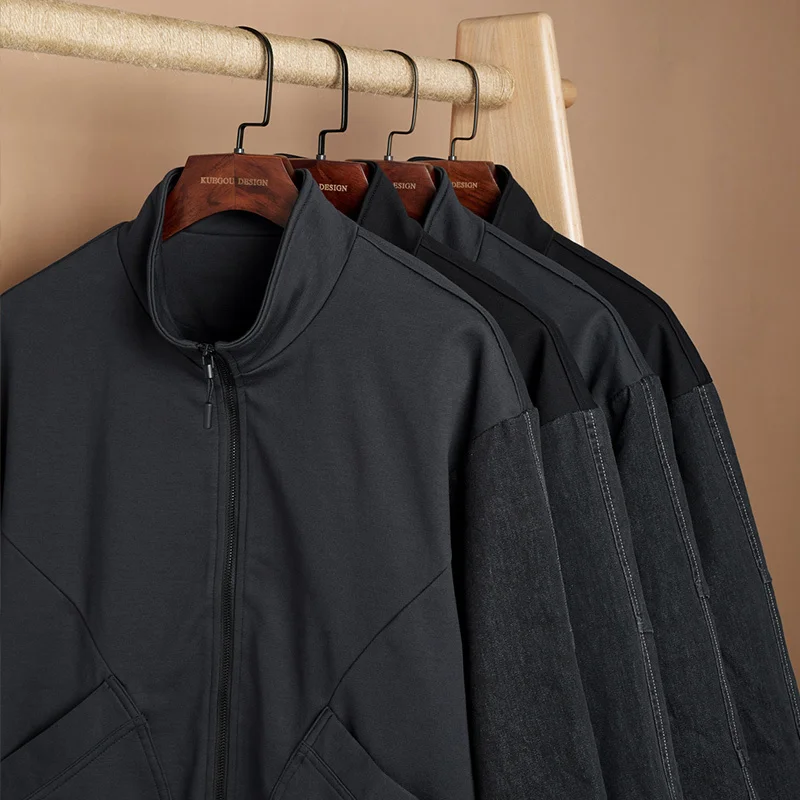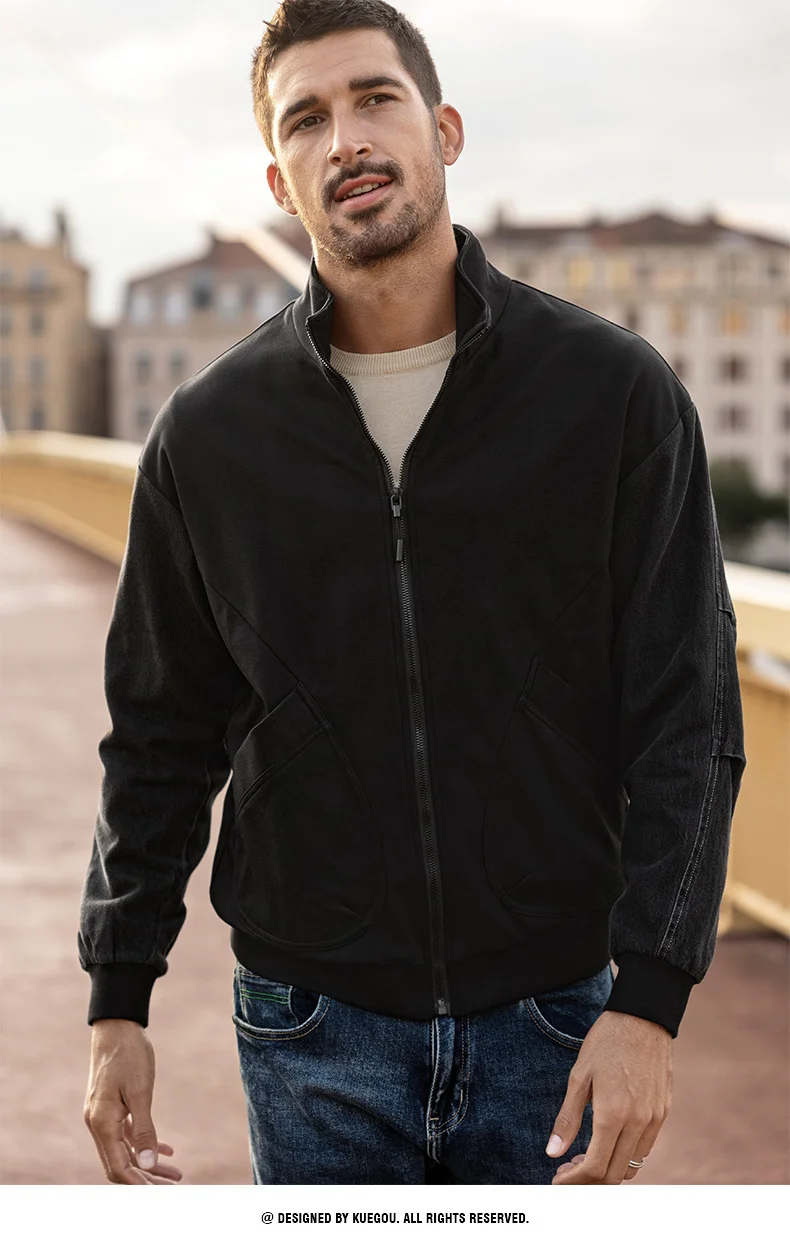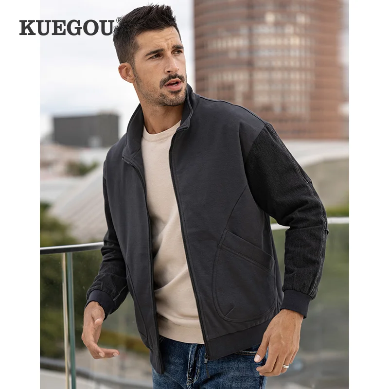 KUEGOU 2022 Весенняя черная Повседневная куртка Мужские хлопковые пальто для верхней одежды Японская уличная Тактическая Военная винтажная одежда 8824