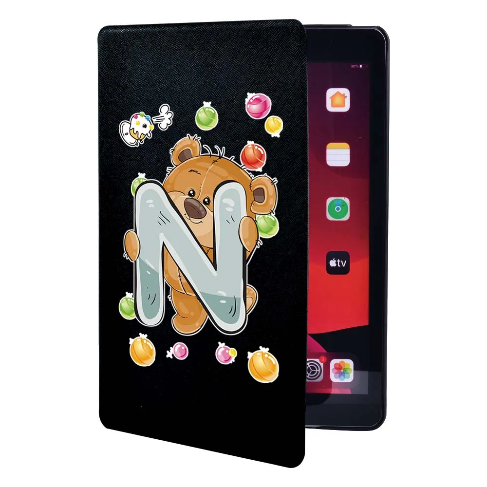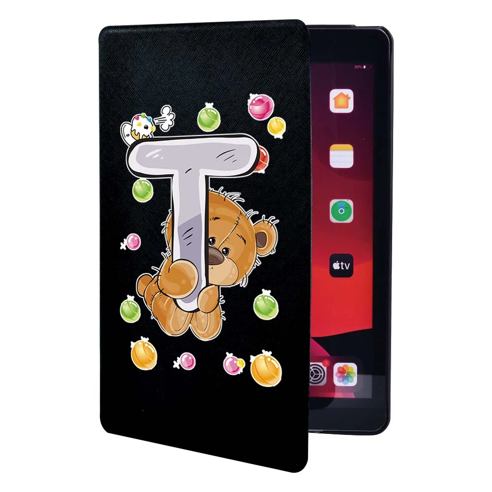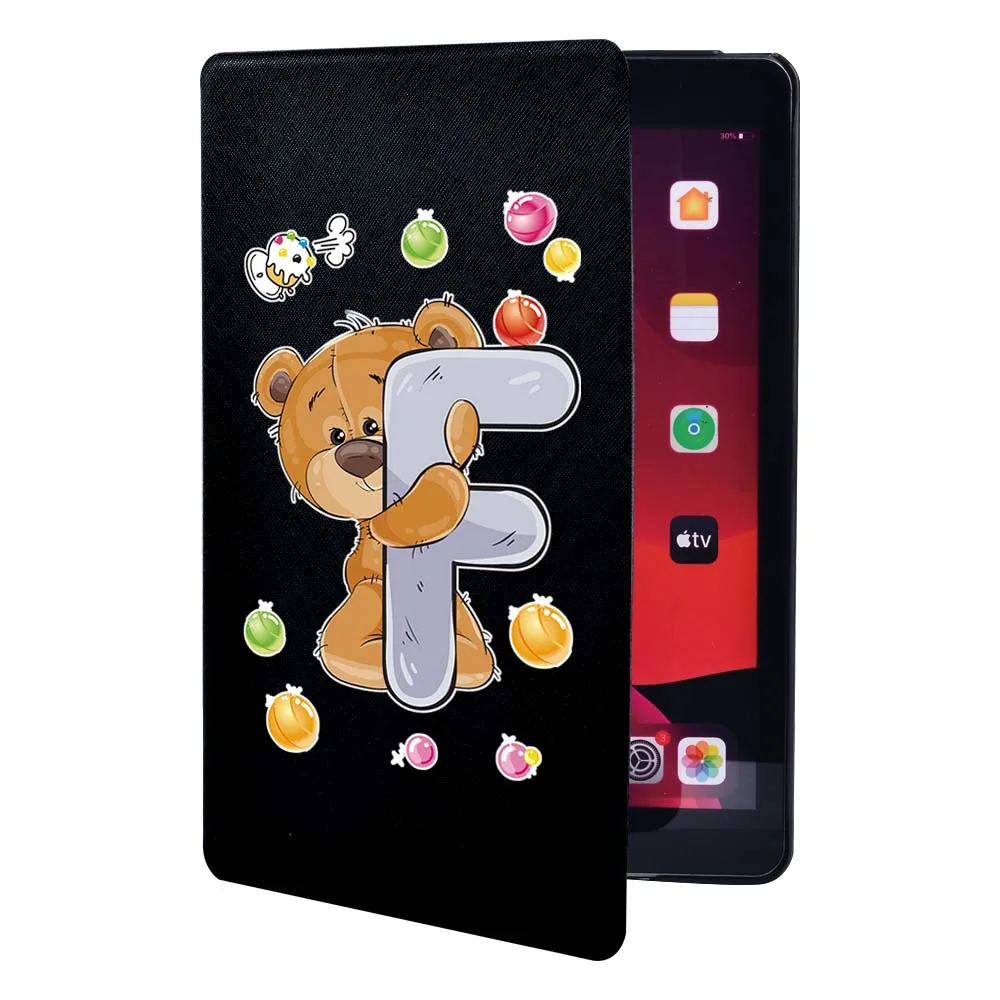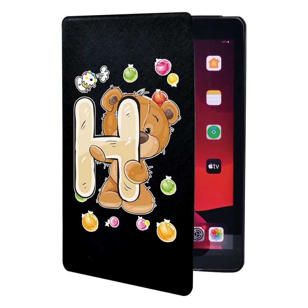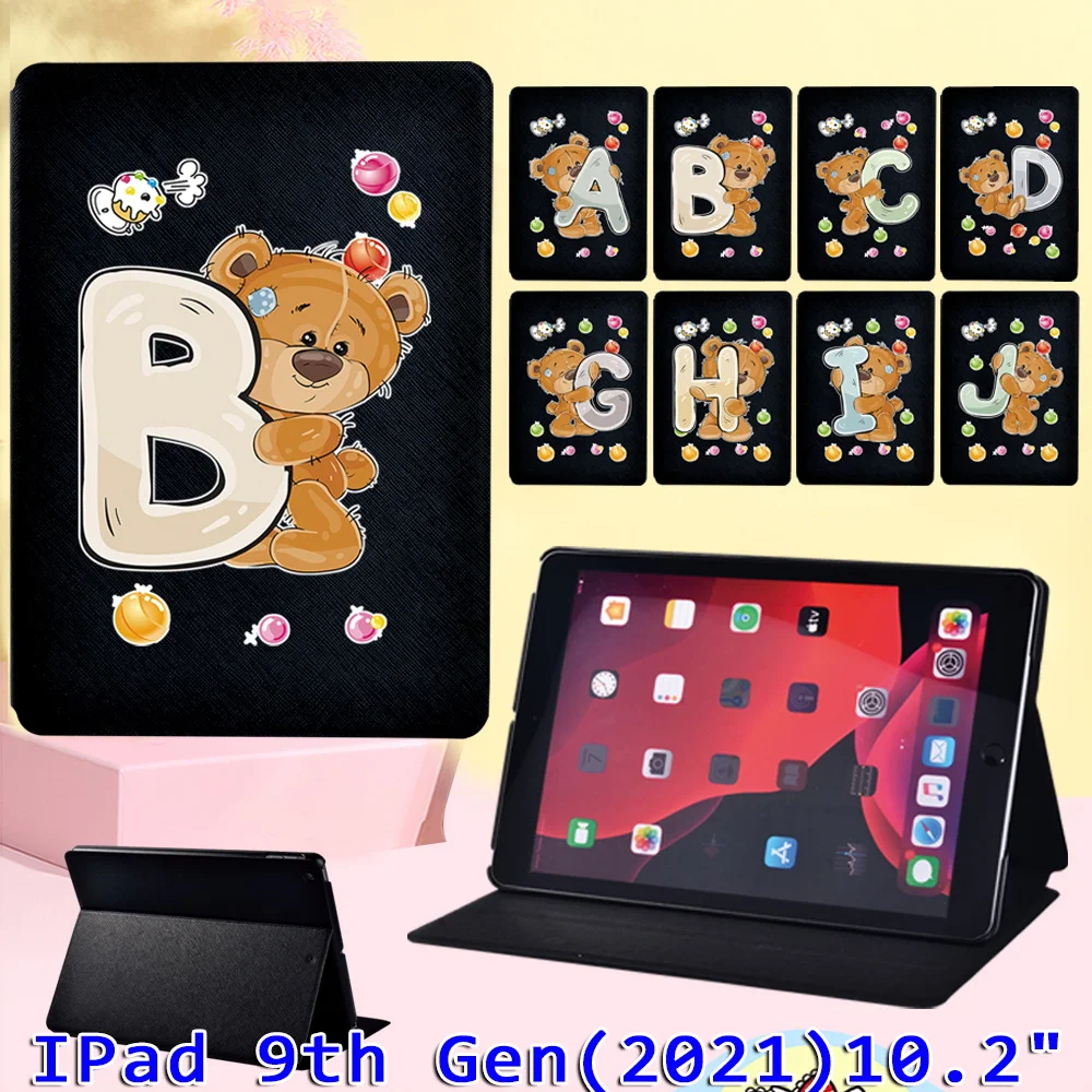 Чехол для планшета Apple iPad, 10,2 дюйма, 9 поколения, 2021, противоударный чехол с принтом симпатичного медведя, инициального имени, 26 букв, серия, чехол-подставка