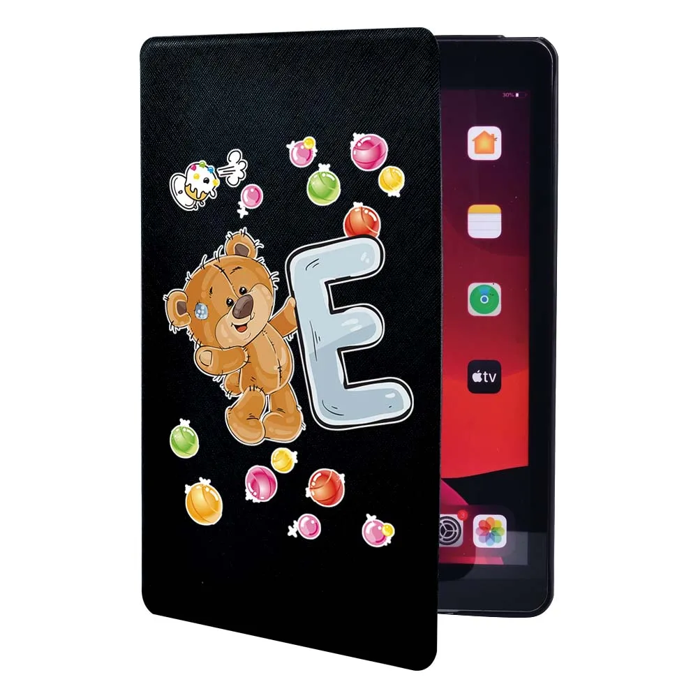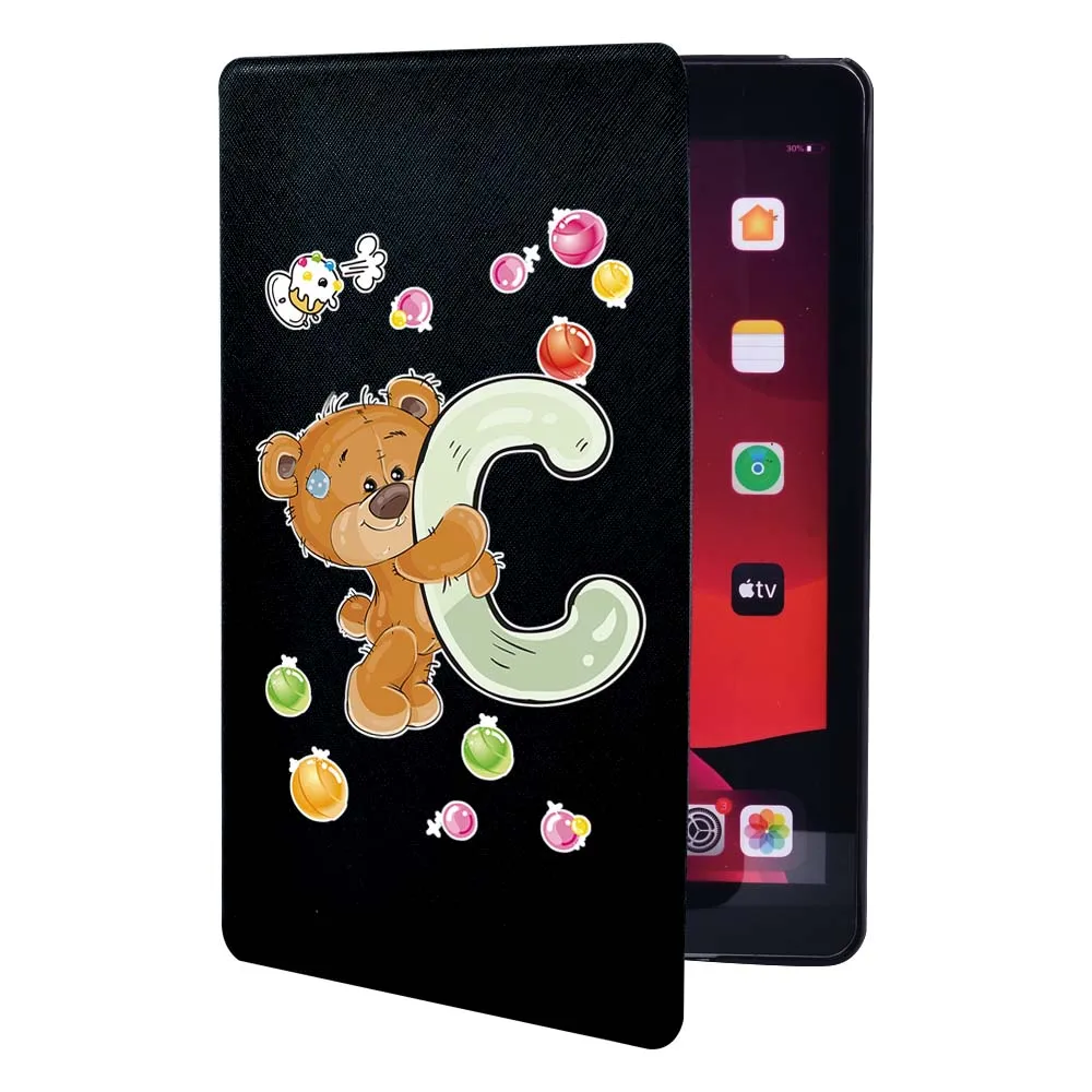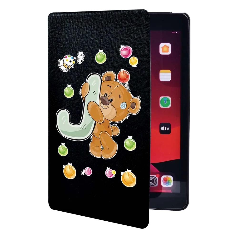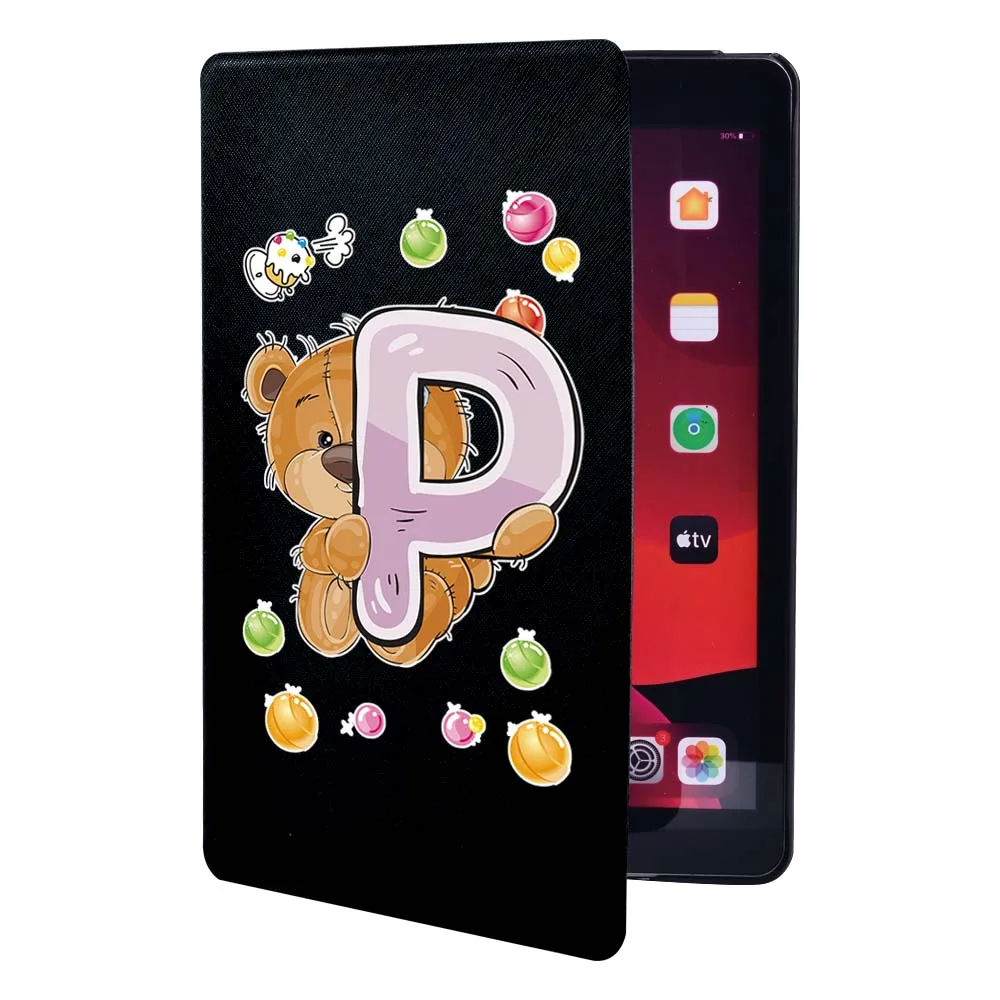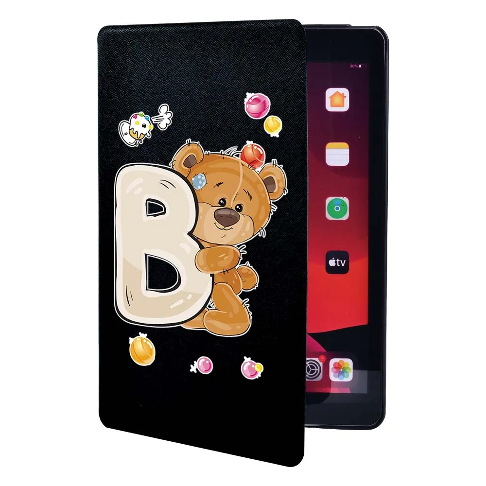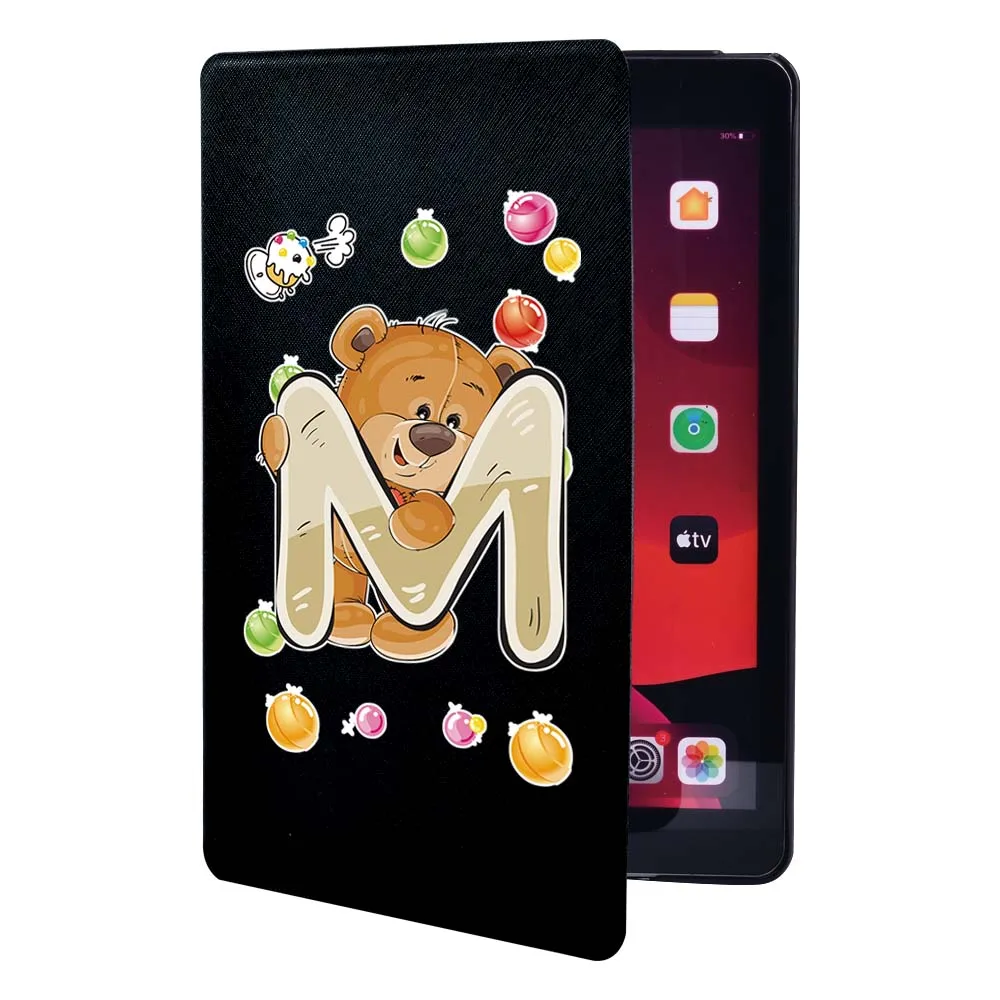 Чехол для планшета Apple iPad, 10,2 дюйма, 9 поколения, 2021, противоударный чехол с принтом симпатичного медведя, инициального имени, 26 букв, серия, чехол-подставка