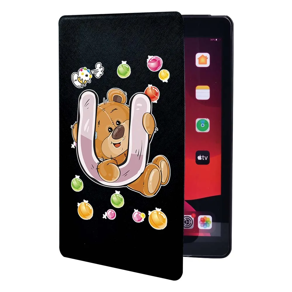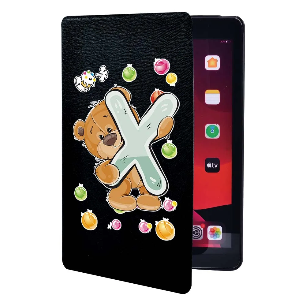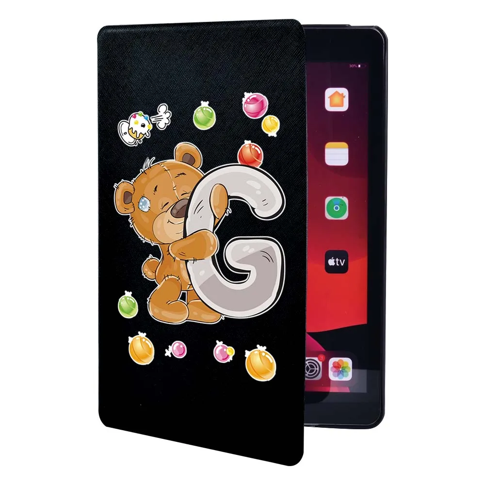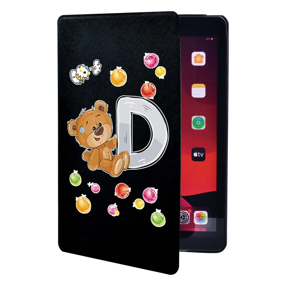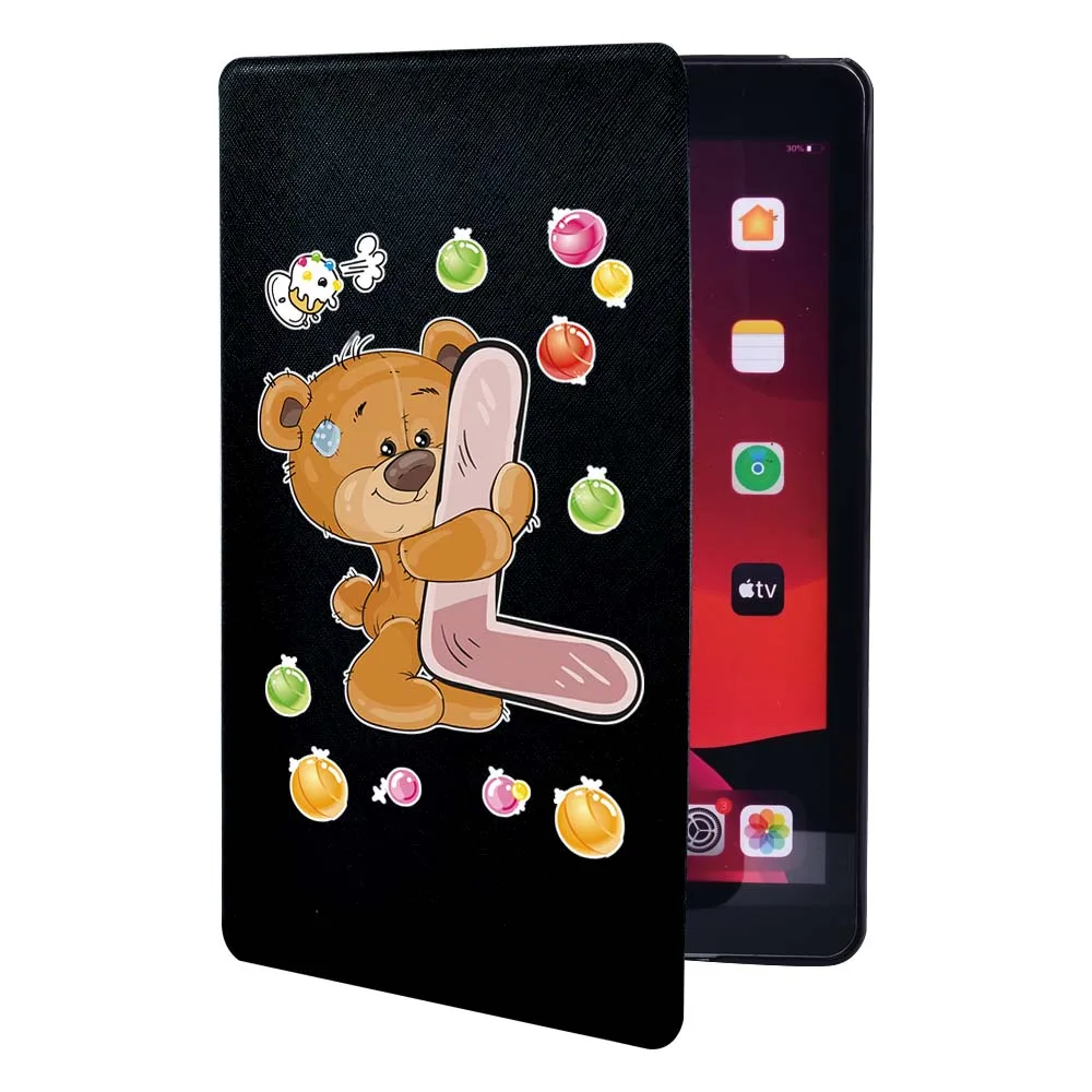 Чехол для планшета Apple iPad, 10,2 дюйма, 9 поколения, 2021, противоударный чехол с принтом симпатичного медведя, инициального имени, 26 букв, серия, чехол-подставка
