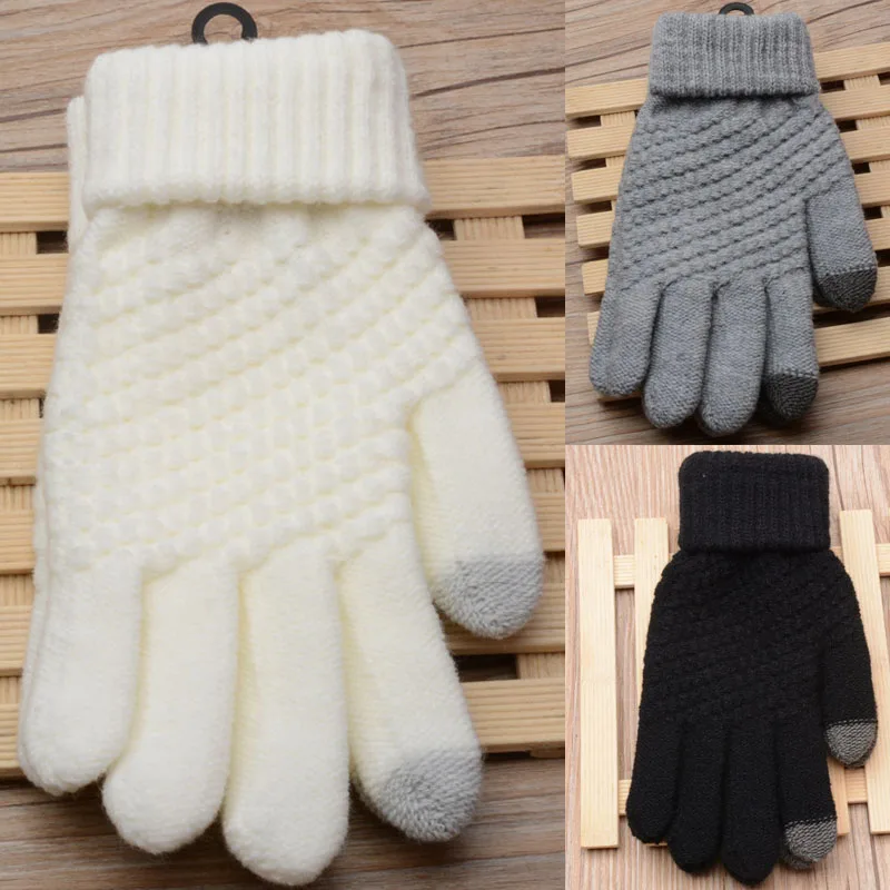 Модные вязаные однотонные ветрозащитные и теплые перчатки, вязаные ...